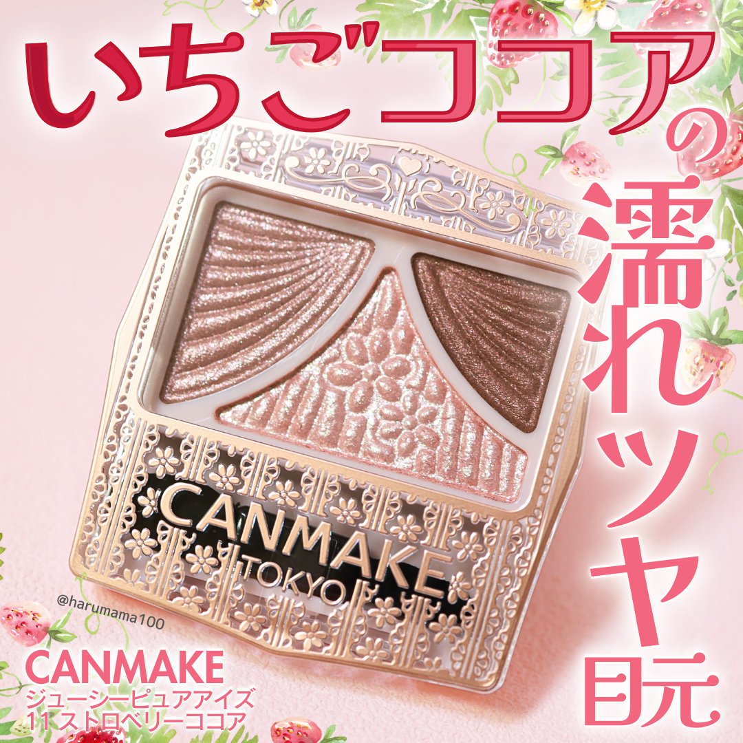 キャンメイクジューシーピュアアイズ11ストロベリーココア¥660ジューシーピュアアイズは何色も持っていますが、今日はこのストロベリーココアを紹介します🍓🍫ジューシーピュアアイズと言えばなんと言っても真ん中のラメが最高‼️私はブルベですがブルベ...