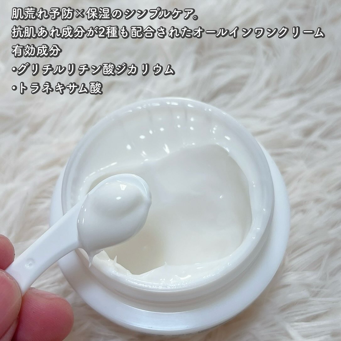 敏感肌のかたも安心して使えるオールインワンクリームです💛 これ一つで肌荒れ予防と保湿の両方のケアができるのでお肌が揺らいでるときやスキンケアを時短で済ませたいときにも助かっています♡ 香料・着色料・パラベン・鉱物油・エタノールフリーの低刺激処方◎