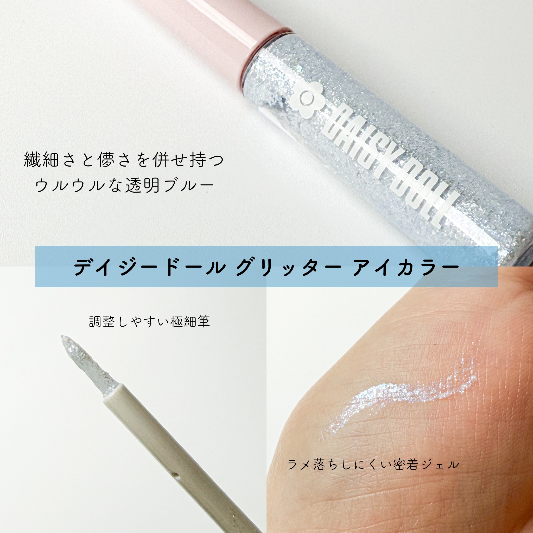 \宝石のように輝く星屑グリッター/【DAISYDOLLグリッターアイカラー】☑️¥1.430☑️BL-01/繊細さと儚さを併せ持つうるうるな透明感ブルー宝石のようにまばゆい光を放つグリッター。このカラーは、パールの配合量が従来のカラーよりもB...