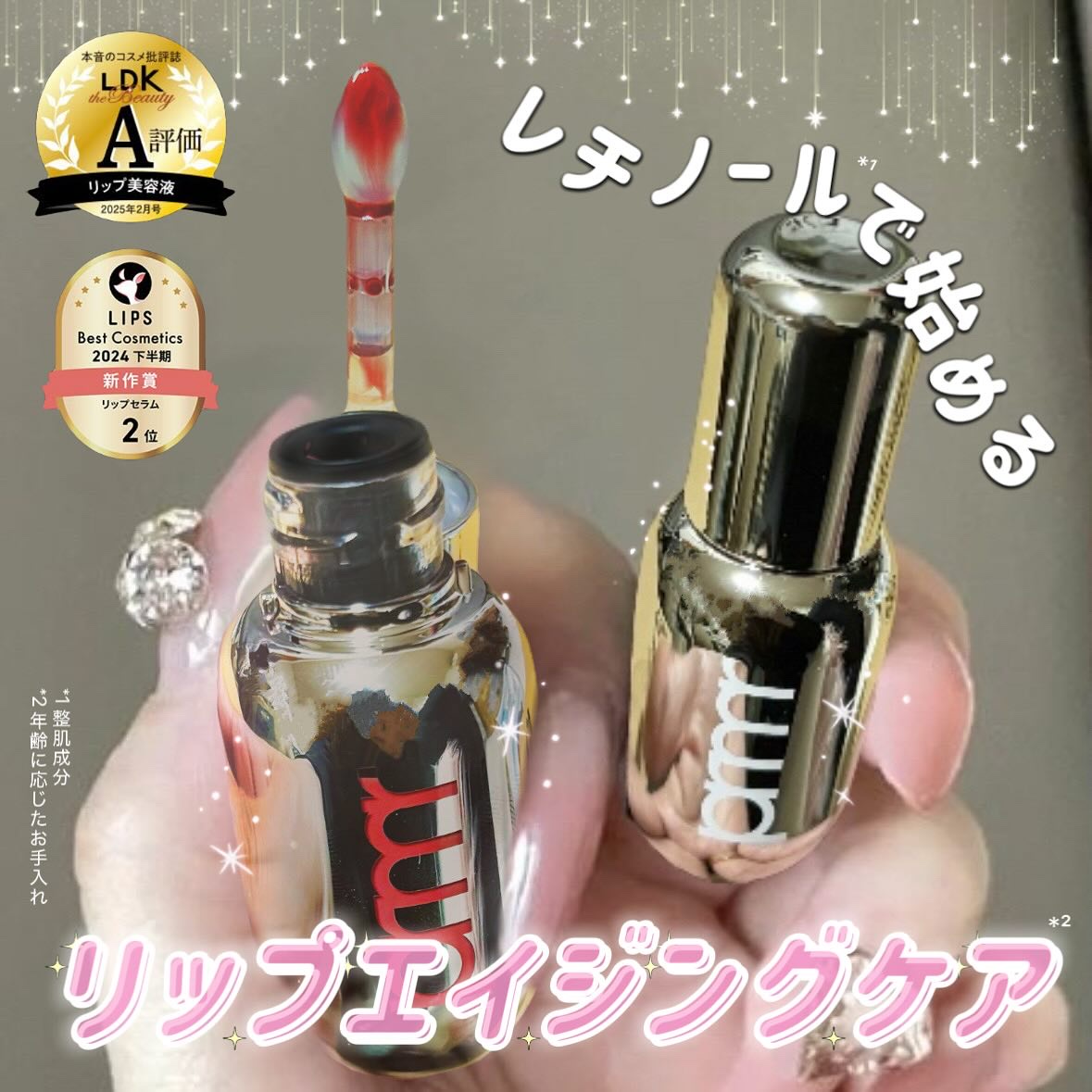- "レチノール*¹で始めるリップエイジングケア*² 使うたびぷるっと弾ける素唇へ *¹ 整肌成分 *² 年齢に応じたお手入れ