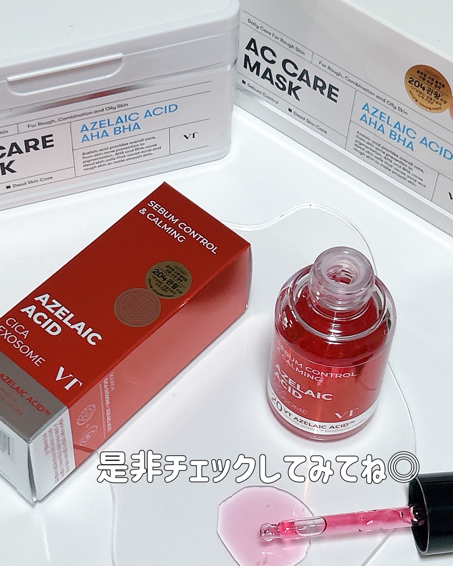 ニキビ、ブラックヘッド、毛穴ケアに鎮静効果まで与えるお守りスキンケア 純度99%アゼライン酸配合した高機能アンプル✨さらにVTならではの鎮静システムであるCICAエクソソームを配合。 1日10分貼るだけでニキビ・肌トラブルをしっかりケアしニキビのできにくい肌に❤️