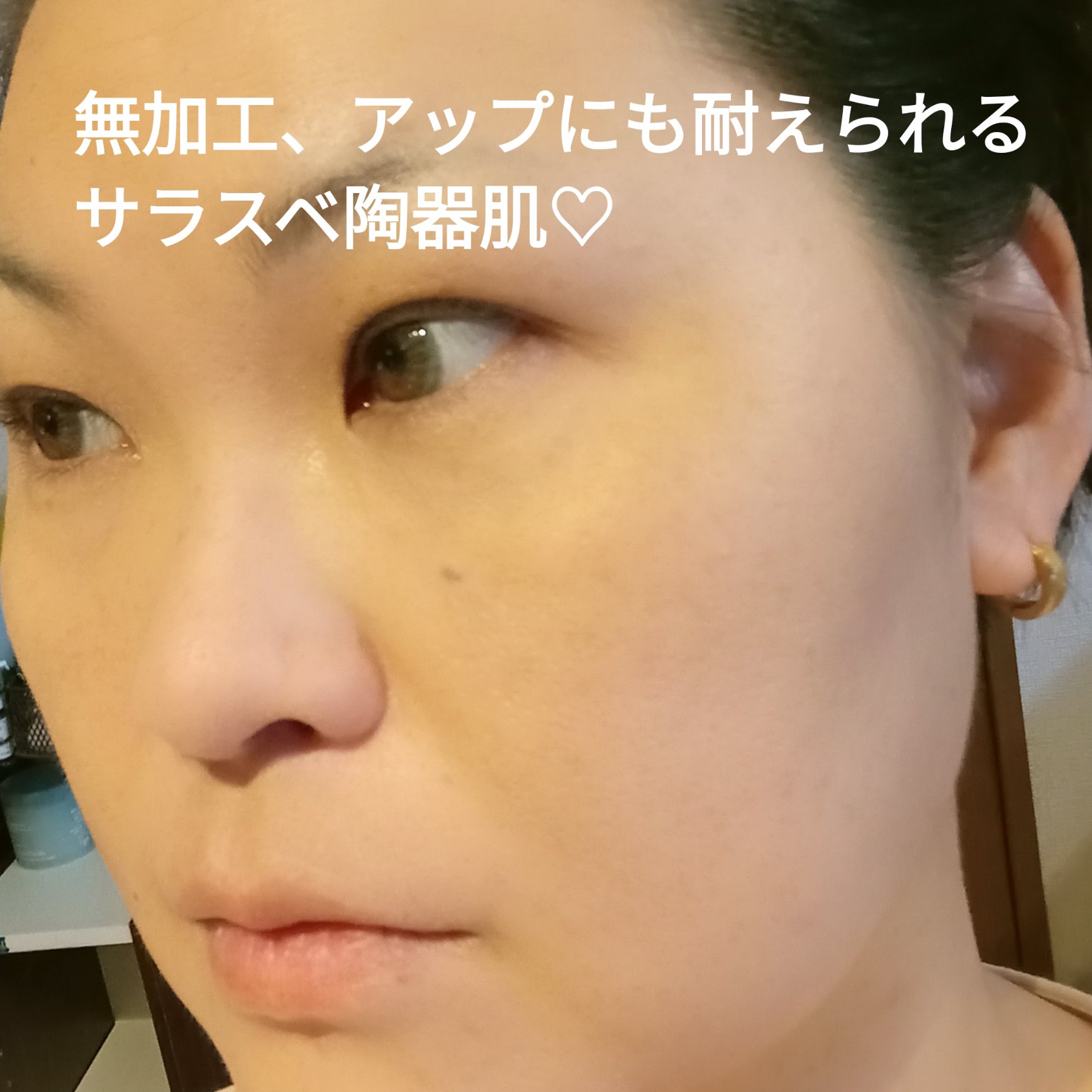つるっとむっちり肌に仕上がります🤭 シミソバカスは透けるけど嫌な感じではないです。色ムラ補正は抜群。だからお風呂から上がってスキンケアしてツヤっとしてすっぴんきれいじゃないか!な肌ができる。 オイリーでも嫌な艶感出てこないし なんだか不思議な感じなので使った人にしか分からない秘密のスチーミー肌♥