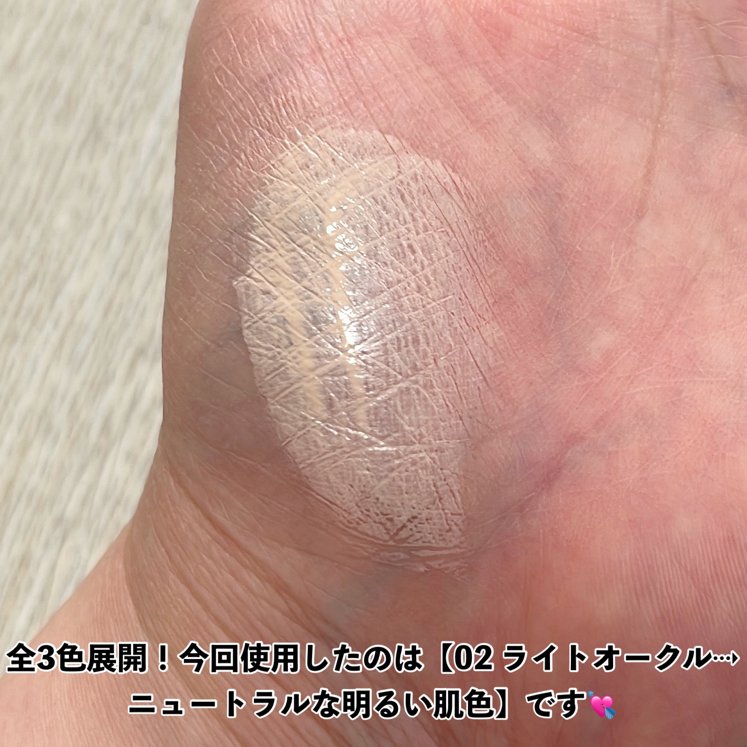 - <01 ピンクベージュ> 水、シクロペンタシロキサン、トリエチルヘキサノイン、ジフェニルシロキシフェニルトリメチコン、PEG-9ポリジメチルシロキシエチルジメチコン、BG、ジメチコン、PEG-10ジメチコン、(ビニルジメチコン/メチコンシルセスキオキサン)クロスポリマー、ジグリセリン、トリメチルシロキシケイ酸、ペンチレングリコール、ナイアシンアミド、加水分解バオバブエキス、水添レシチン、セラミドNG、フィトステロールズ、塩化Na、(ジメチコン/ビニルジメチコン)クロスポリマー、水酸化Al、ジステアルジモニウムヘクトライト、フェノキシエタノール、含水シリカ、トリエトキシカプリリルシラン、ハイドロゲンジメチコン、ステアリン酸、トコフェロール、カプリリルグリコール、キサンタンガム、酸化チタン、タルク、酸化鉄 <02 ライトオークル> 水、シクロペンタシロキサン、トリエチルヘキサノイン、ジフェニルシロキシフェニルトリメチコン、PEG-9ポリジメチルシロキシエチルジメチコン、BG、ジメチコン、PEG-10ジメチコン、(ビニルジメチコン/メチコンシルセスキオキサン)クロスポリマー、ジグリセリン、トリメチルシロキシケイ酸、ペンチレングリコール、ナイアシンアミド、加水分解バオバブエキス、水添レシチン、セラミドNG、フィトステロールズ、塩化Na、(ジメチコン/ビニルジメチコン)クロスポリマー、水酸化Al、ジステアルジモニウムヘクトライト、フェノキシエタノール、含水シリカ、トリエトキシカプリリルシラン、ハイドロゲンジメチコン、ステアリン酸、トコフェロール、カプリリルグリコール、キサンタンガム、酸化チタン、タルク、酸化鉄 <03 オークル> 水、シクロペンタシロキサン、トリエチルヘキサノイン、ジフェニルシロキシフェニルトリメチコン、PEG-9ポリジメチルシロキシエチルジメチコン、BG、ジメチコン、PEG-10ジメチコン、(ビニルジメチコン/メチコンシルセスキオキサン)クロスポリマー、ジグリセリン、トリメチルシロキシケイ酸、ペンチレングリコール、ナイアシンアミド、加水分解バオバブエキス、水添レシチン、セラミドNG、フィトステロールズ、塩化Na、(ジメチコン/ビニルジメチコン)クロスポリマー、水酸化Al、ジステアルジモニウムヘクトライト、フェノキシエタノール、含水シリカ、トリエトキシカプリリルシラン、ハイドロゲンジメチコン、ステアリン酸、トコフェロール、カプリリルグリコール、キサンタンガム、酸化チタン、タルク、酸化鉄