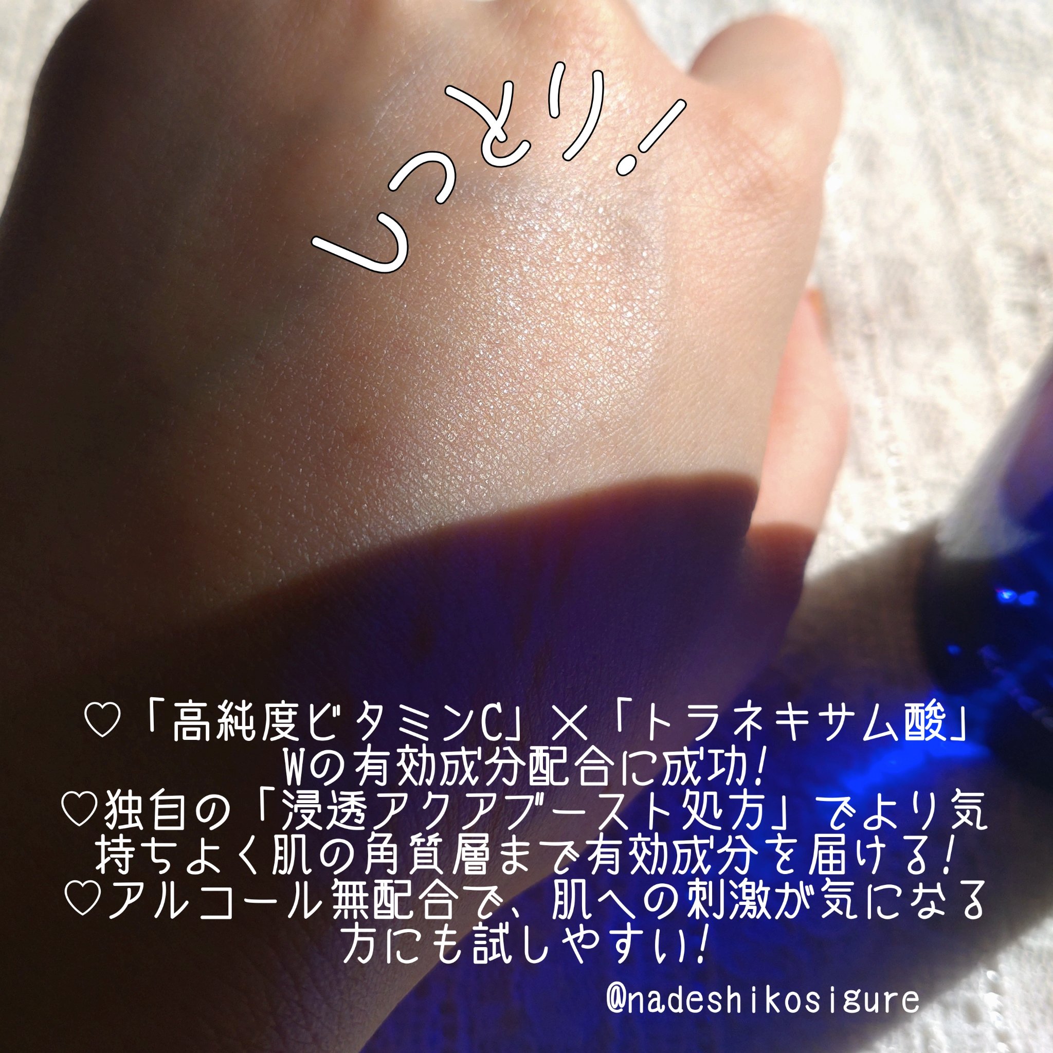 高純度ビタミンC✕トラネキサム酸Wの有効成分配合に成功し、独自の「浸透アクアブースト処方」でより気持ちよく肌の角質層まで有効成分を届けてくれるそうです🥺🤍 サラッとしたテクスチャーで伸び・肌なじみが良くしっとりもっちりとした肌仕上がりに☺️ 保湿、整肌に加えて美白ケア、肌荒れケアもできるしアルコール無配合で、肌への刺激が気になる方にも試しやすい設計なのも嬉しいポイント✨️