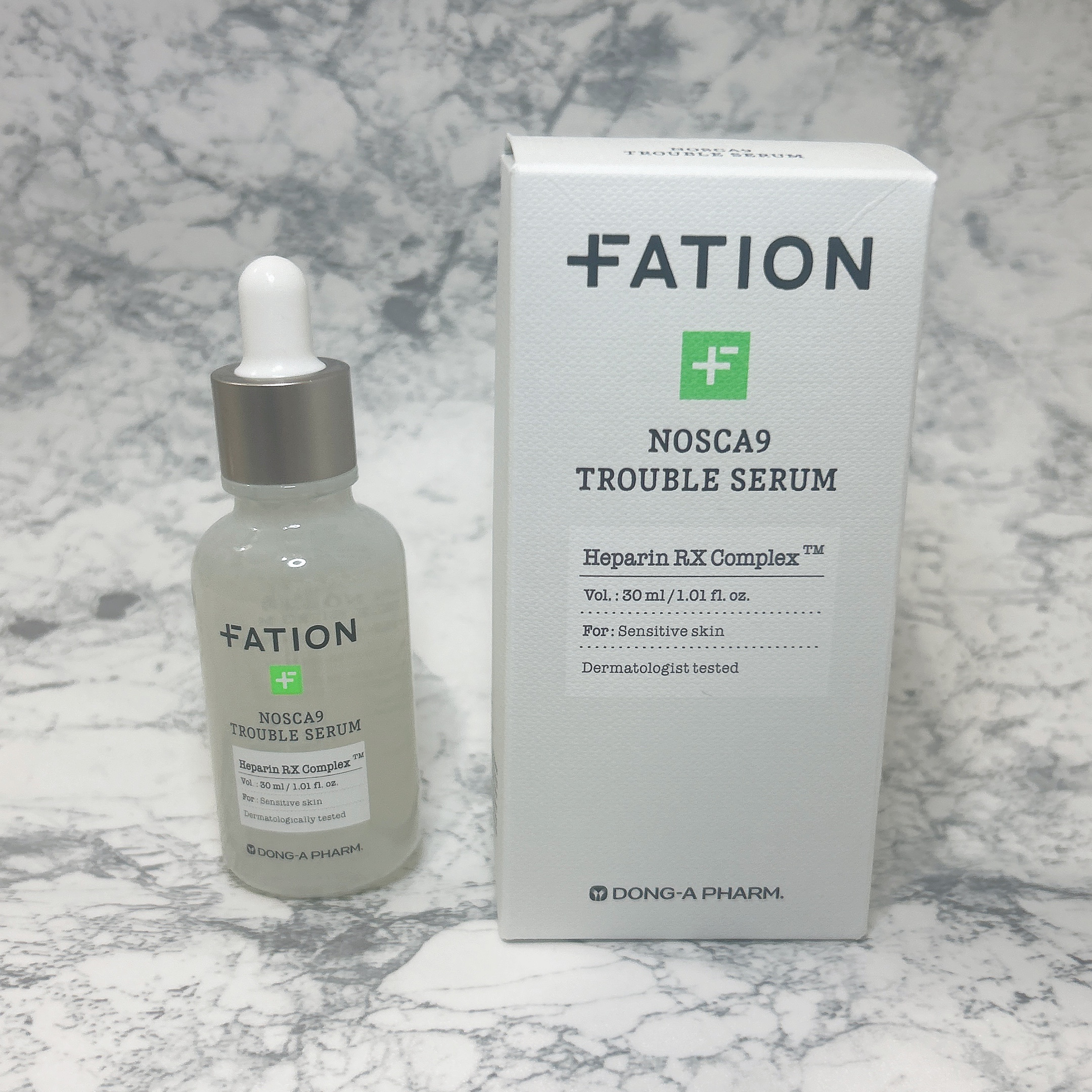 90年を超える韓国TOPの製薬会社【東亜製薬】で9年間研究開発して作られたFATIONのノスカナインライン 肌荒れや外部刺激で赤くなった肌の鎮静など、繰り返す肌トラブルにおすすめのセラムとクリーム♪ 9年間研究した、東亜製薬の特許うるおい成分46%配合✨ ほんのりとろみがあってスーッと肌になじむテクスチャー。
