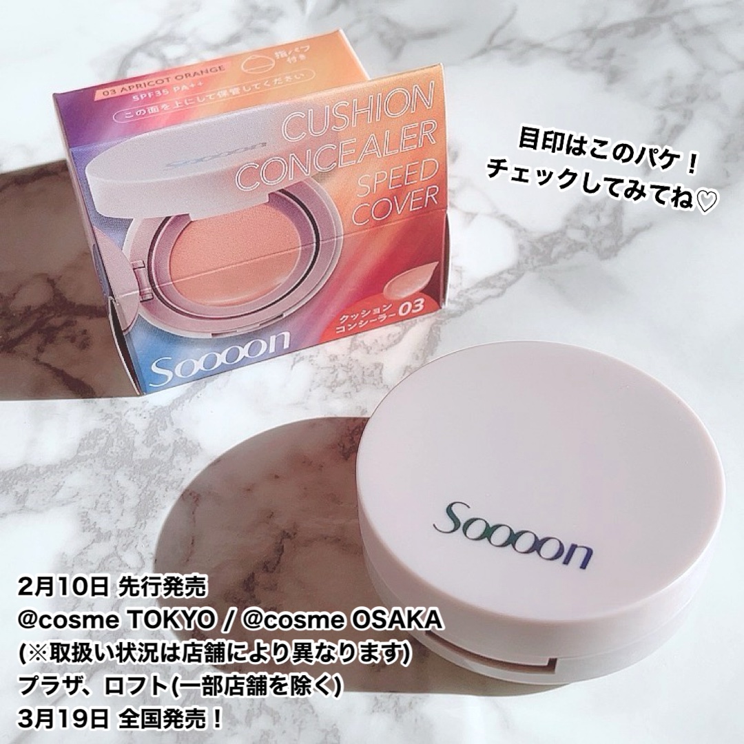 とっても優秀なフィルター級クッションコンシーラー🤳🏻⋆꙳ コンパクトで持ち運びにも便利、指パフが付いていてどこでも使える! シミ・クマ・くすみをカバーしてくれるよ🧸⸒⸒ 03はオレンジみのあるカラーで青クマをなかったことに! 🏷️ スーン クッションコンシーラー 03アプリコットオレンジ