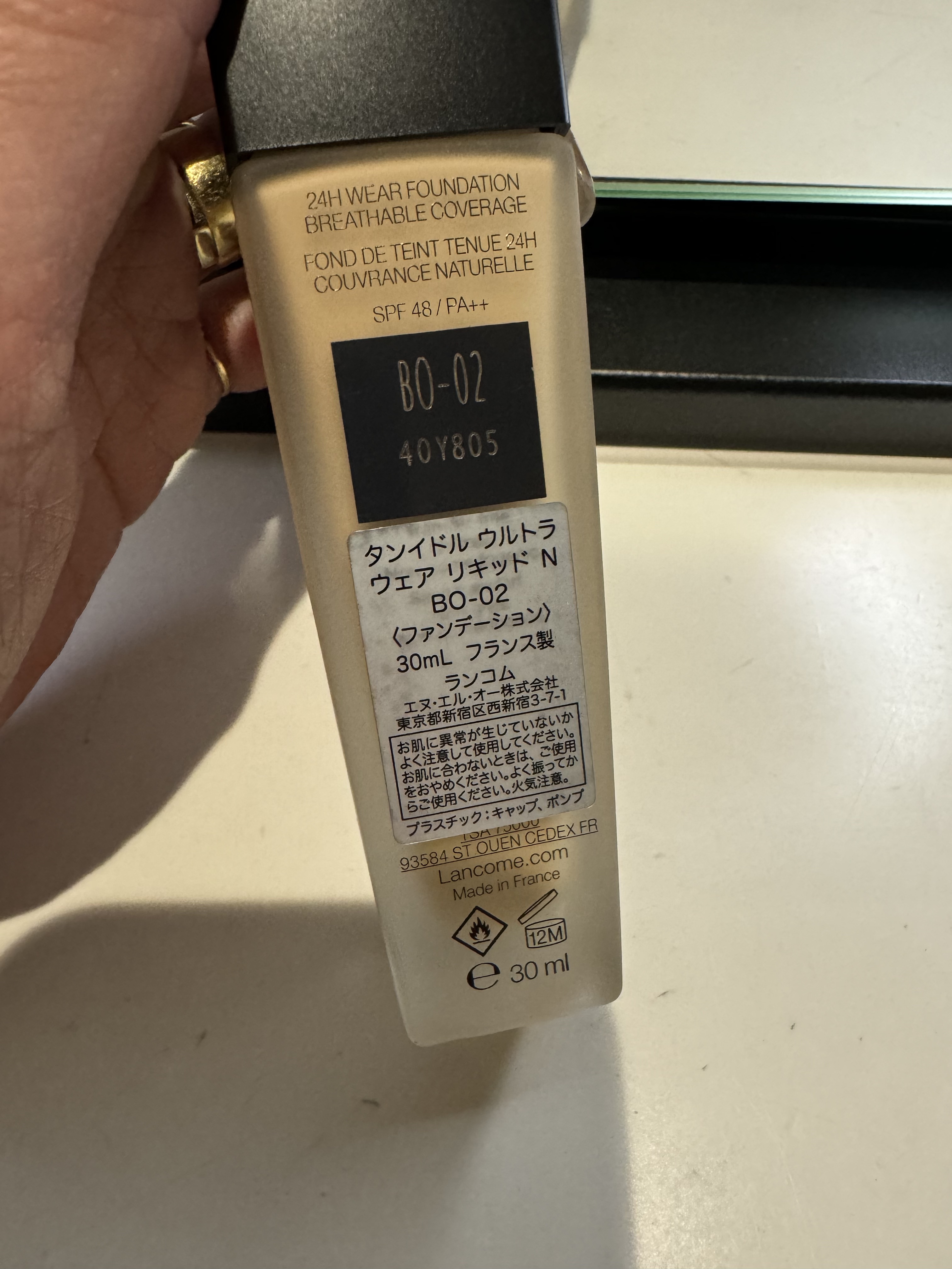 LANCOMEより商品提供いただきましたLANCOMEタンイドルウルトラウェアリキッドN(BO-02)30mlSPF48PA++24時間*1、美しさ止まらない。思いのままのカバー力で、毛穴レス*2美肌。全14色展開。あたしは、BO-02(標準...