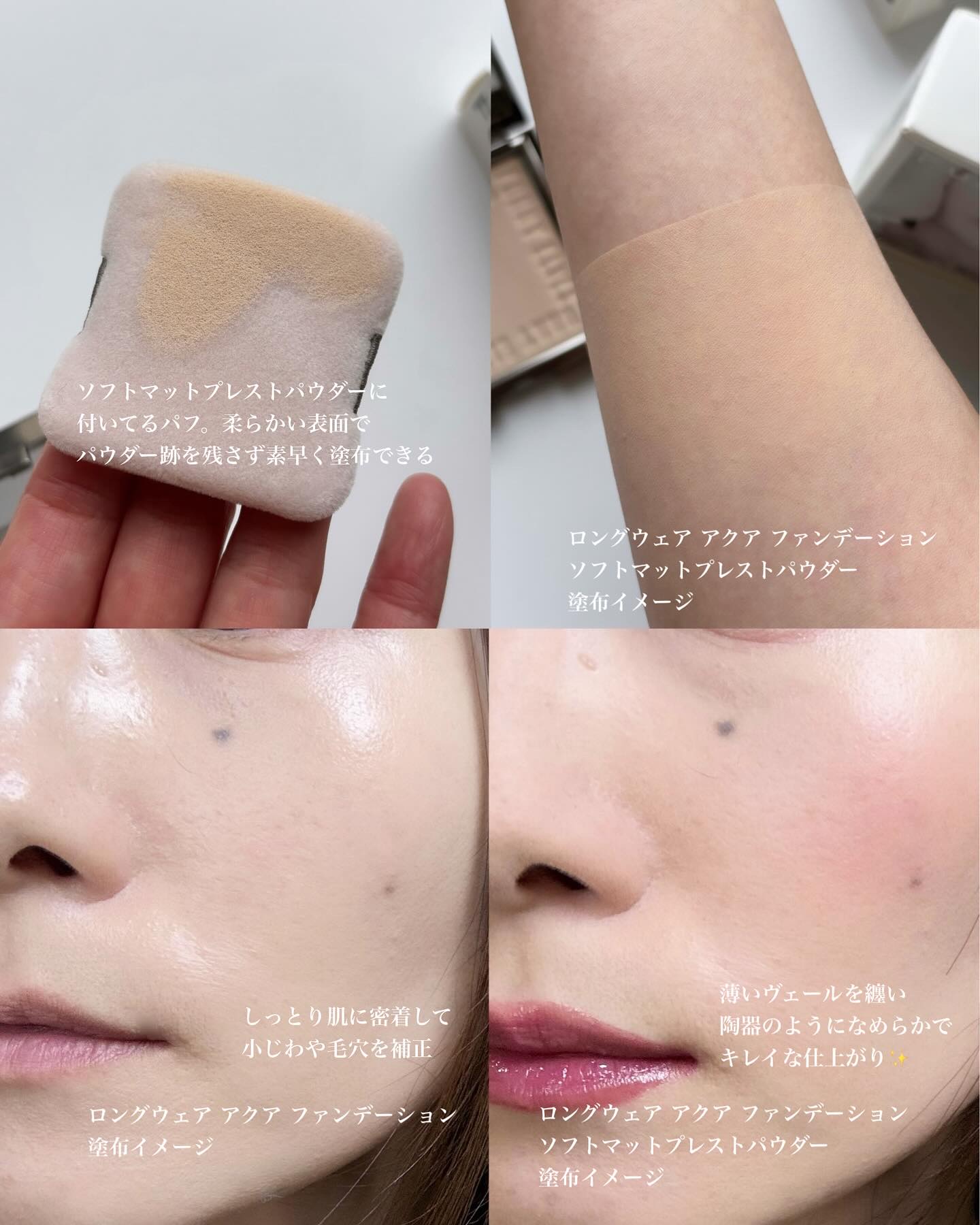 24H崩れ知らず「長時間続く上品なツヤ肌」 保湿、油分コントロールで皮脂や汗に強く 美容液のようにみずみずしいテクスチャーでスッと肌に馴染み元々の素肌が綺麗なような仕上がり 海外で2500万個販売達成している人気のプレストパウダー 美肌が加工がいらないくらい毛穴をふんわりカバー