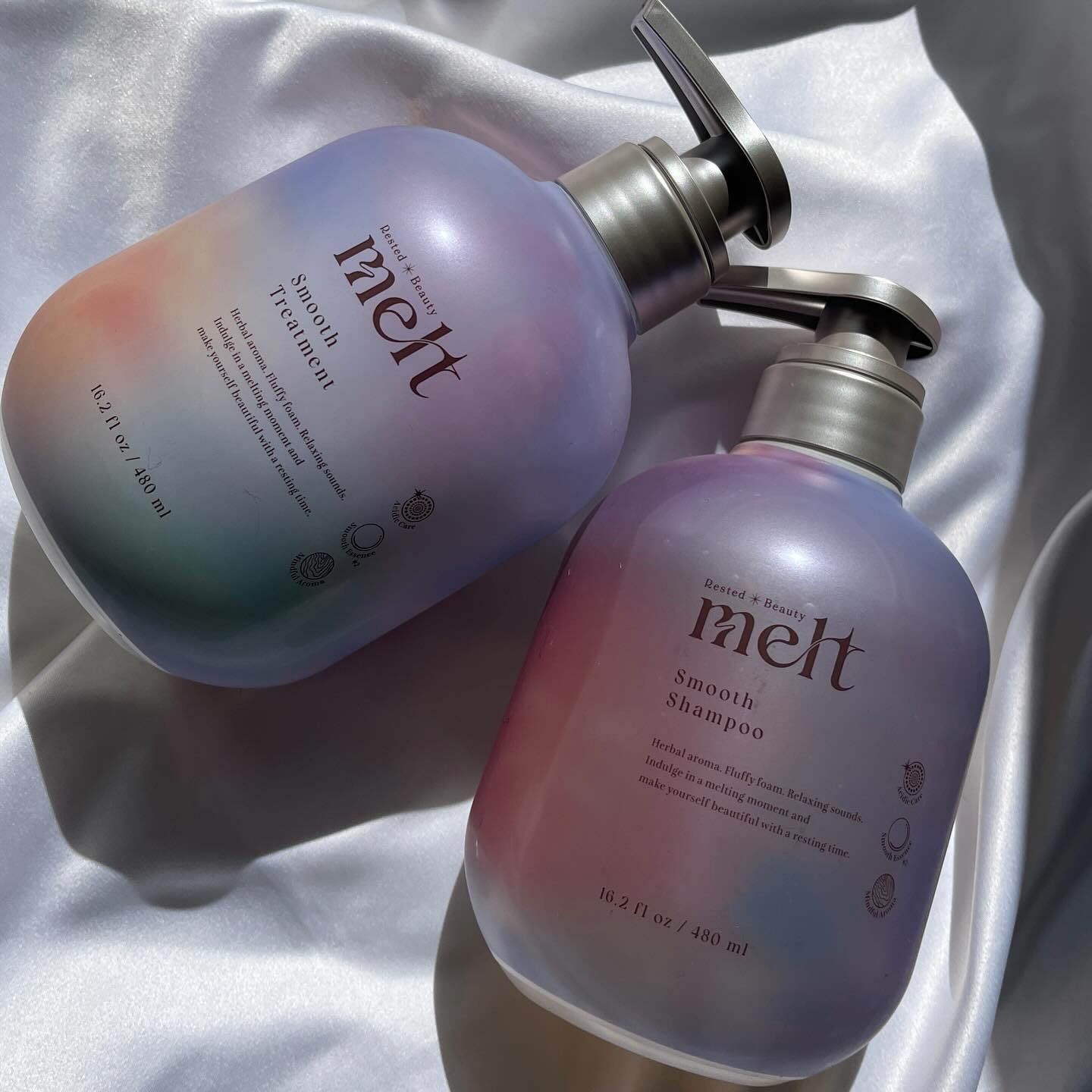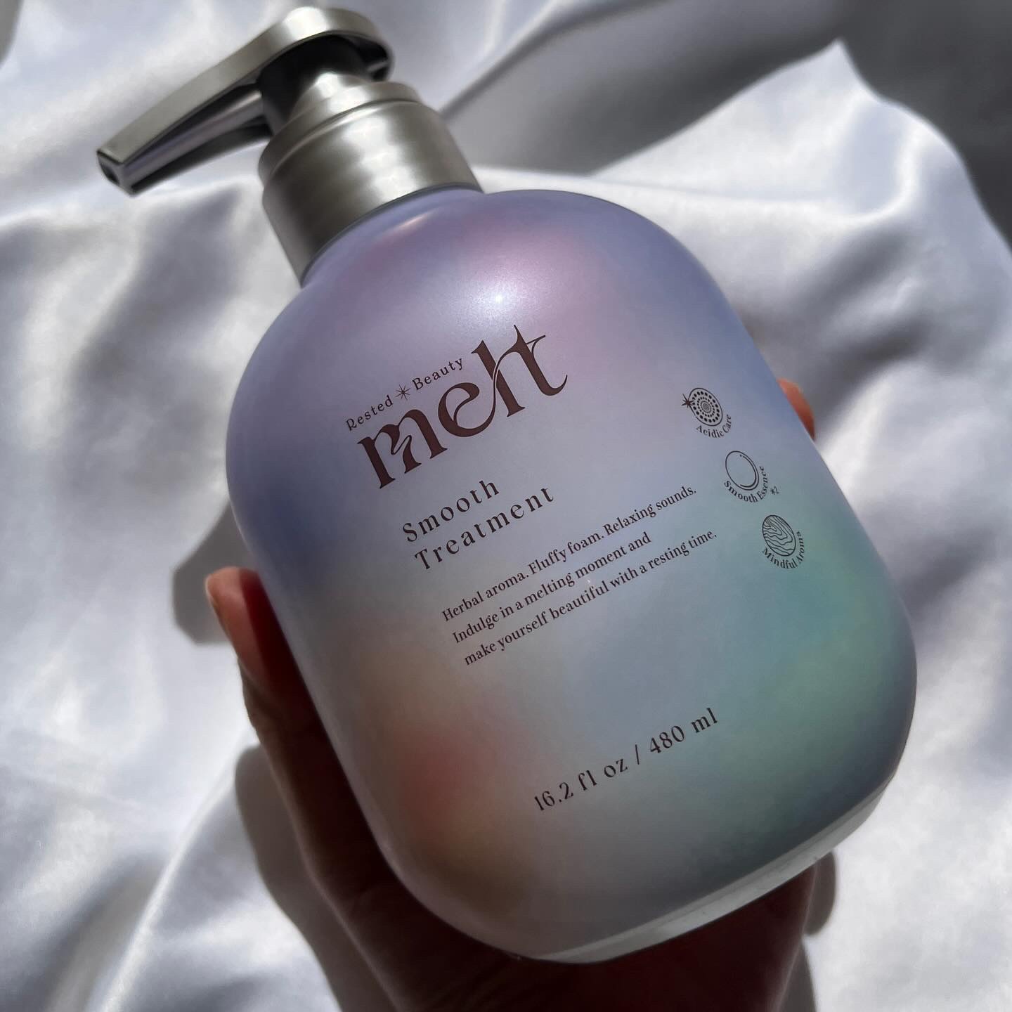 うねり髪向けの“スムースシリーズ”が登場! <休みながら美しく 休息美容>をコンセプトとしたmeltのシャンプートリートメント、ピンクのボトルを愛用しているのでこのスムースシリーズも使うのを楽しみにしていました♡ シャンプーには、酸性うねりケア成分が配合されていて、うねり髪もとろけるようなさらツヤ髪へ導いてくれるんだそう✨ 個人的にmeltの1番の特徴は香りだな〜と思っています。モイストとはまた違った、ピオニー&フィグの香り。大人っぽくてスッキリ使えるのに甘さもある香りで大好き〜!