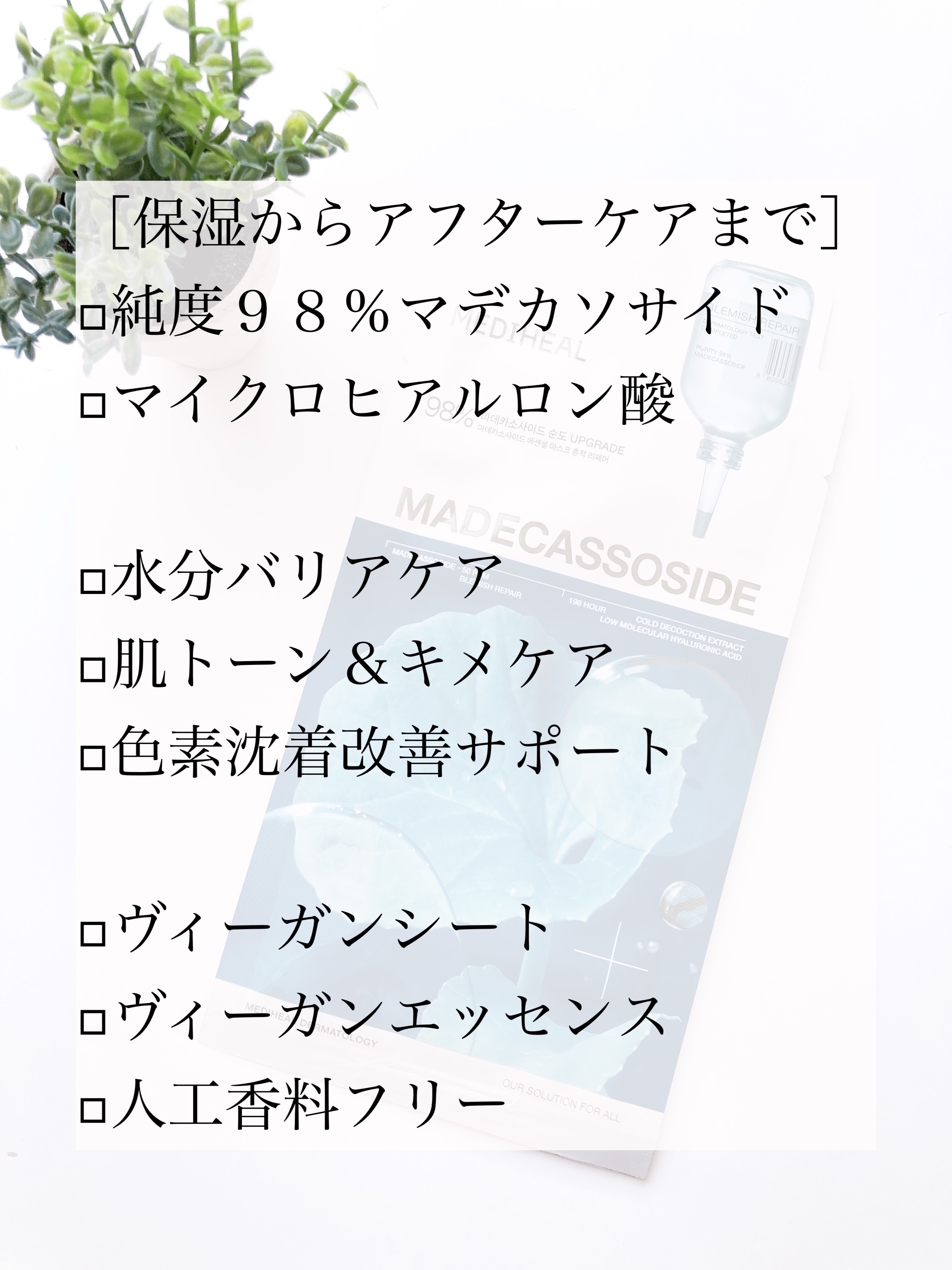 ツボクサから2回抽出したマデカンサイドとナイアシンアミド成分で肌のトーンを明るくする、くすみケアパッド👶🏻✨ 保湿+肌荒れ防止+トラブルアフターケアを目的とした低刺激なシートマスク👶🏻🩵 ヒアルロン酸✕マデカソサイドでうるおいはたっぷり、くすみはすっきり✨