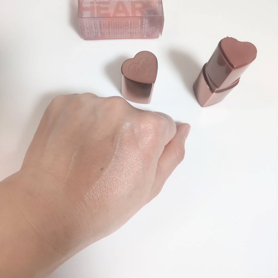 クリーミーテクスチャーが柔らかく広がって軽く密着💡 スティックが♡型なのでぽんっとのせてぼかしていくのがおすすめ☝️💓 毛穴に詰まったり毛穴落ちせずしっとりつやっと可愛いまま長時間カラーキープしてくれるよ🥰 いつでもどこでも使い勝手のいいラブリーなハートスティックなのでポーチに入れておくのも◎