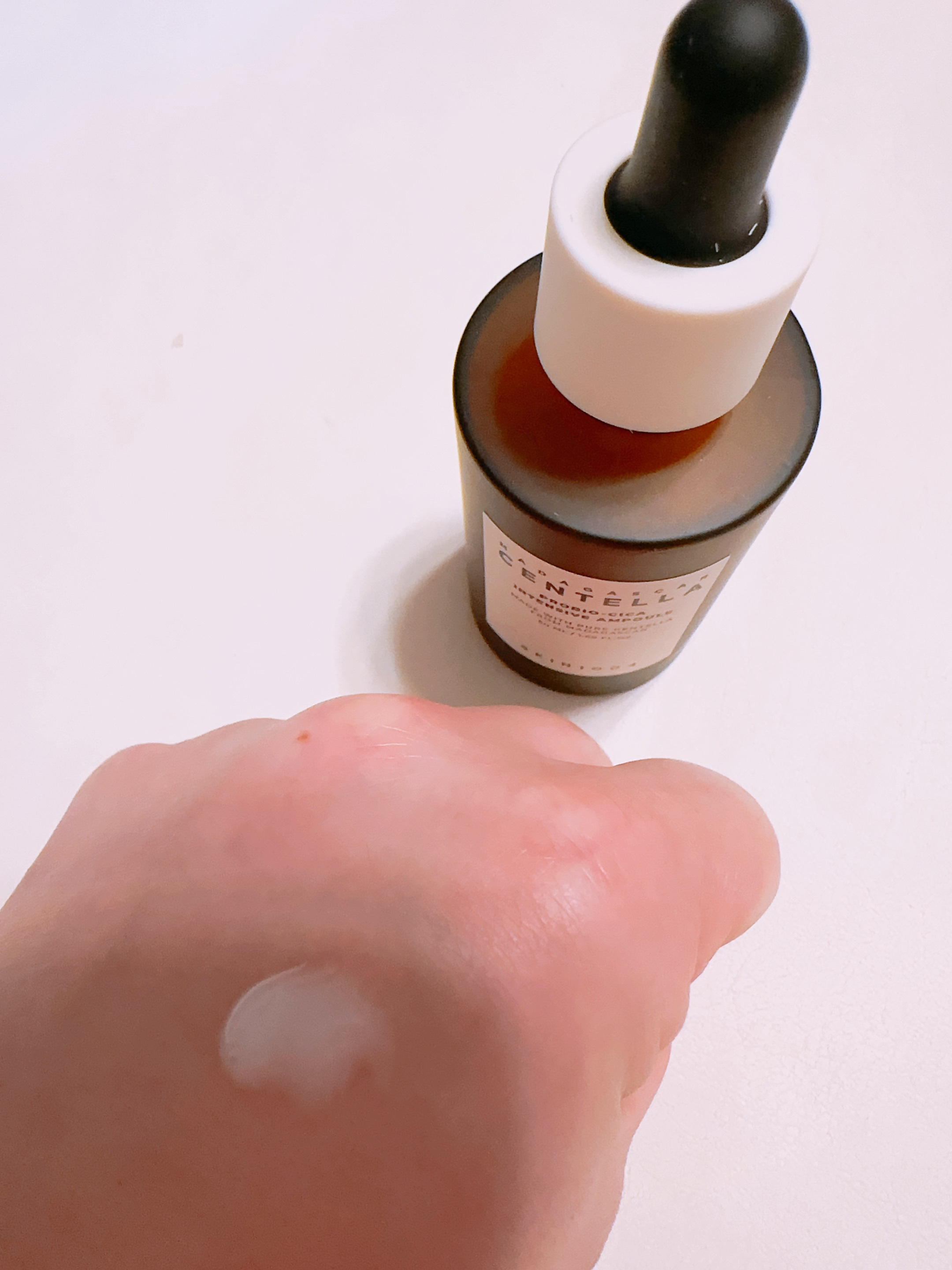 肌の調子が良くなったことに驚いています。 特に、肌荒れや乾燥が気になっていたのですが、このアンプルを使うとしっとりと潤いが続き、肌が落ち着いてきました。 テクスチャーはさらっとしていてべたつかず、軽い感じで肌に馴染みやすいです。 香りも控えめで、香料が苦手な私にとっては嬉しいポイントです。 頬の赤みが少しずつ引いてきたのも実感しています。 センテラ成分のおかげで、炎症を抑えてくれているのかなと思います。