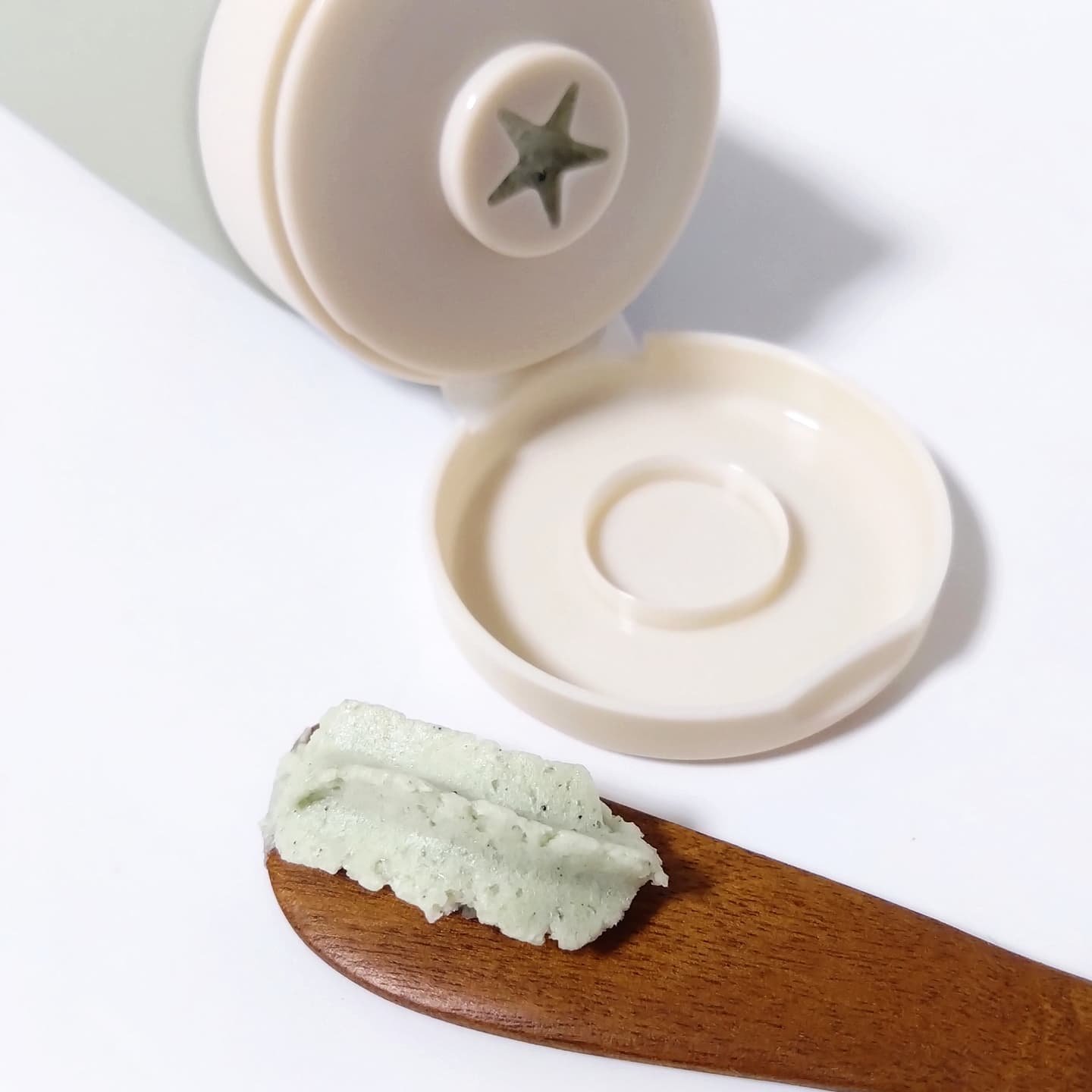 W洗顔不要のクレンザーで洗い流すパックとしても使用出来るよ🌱 48時間の熟成と500回以上の泡立てで作られていて気持ちの良いテクスチャー✨ フレッシュなティーツリーの香りはすっきりさわやかで好きな香り🌳