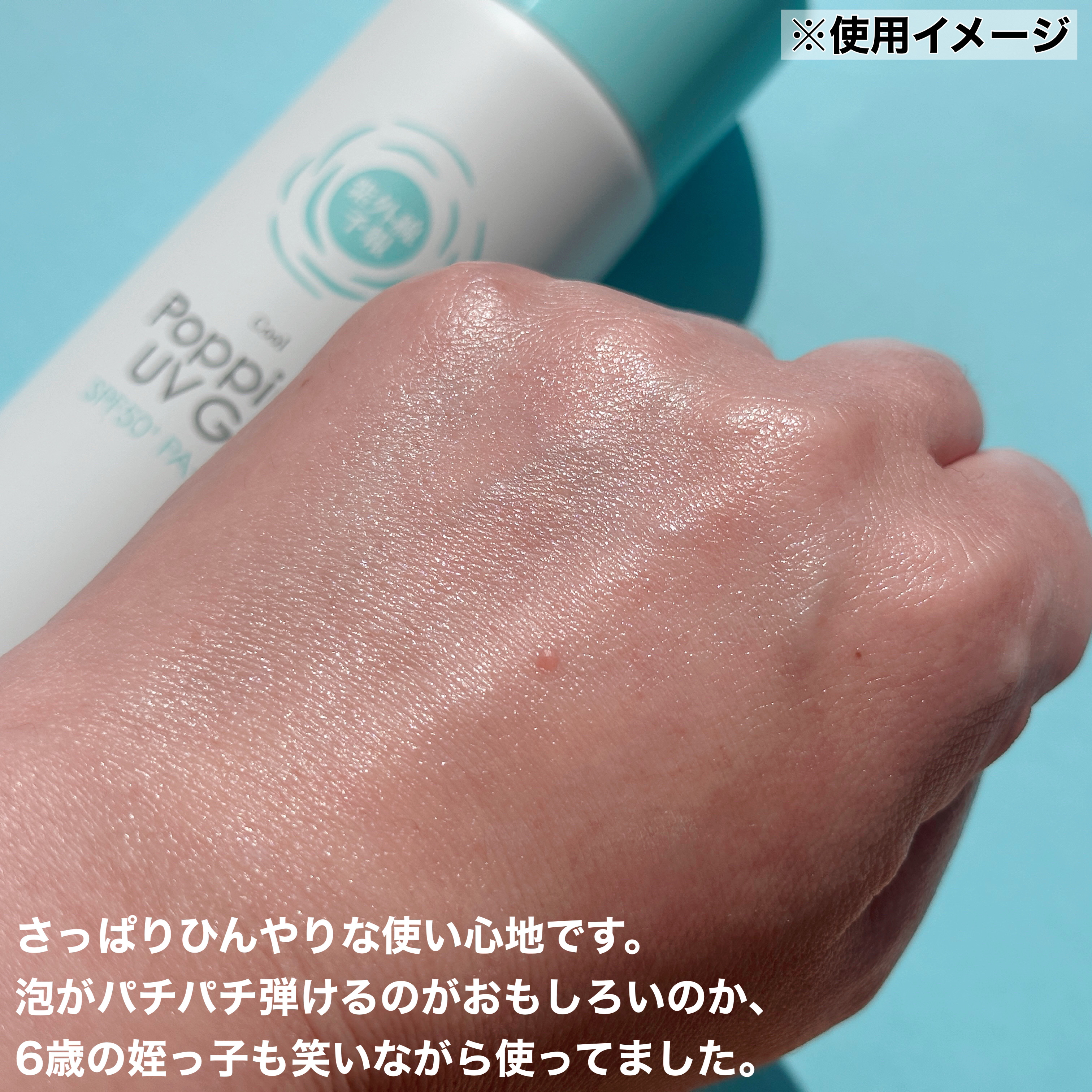 紫外線だけでなく暑さから逃れたい日が多かった印象です💦 毎日UVケアはするものの汗ですぐ流れてしまう… スプレーして出た泡を体に塗り広げると、パチパチ音を立てて肌をひんやりリフレッシュできます✨ 肌に優しい処方で石けんで落とせ、1歳から使用できます!! 家族みんなで使えるところも推せますね🩵