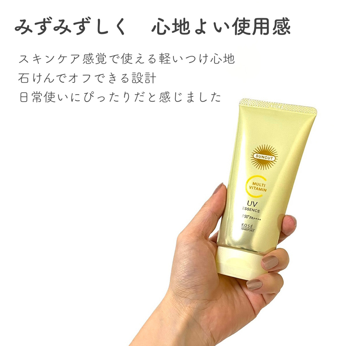 サンカット マルチビタミンUVエッセンスが誕生!未来の美肌を変えるシミ・肌あれ予防UV☀️ 美容液75%配合*1素肌と一体化したようなつけ心地(顔・からだ・髪用) 日焼け止め効果も国内最高値、スキンケア効果、トーンアップ効果(メイクアップによる)、コスパがいい!