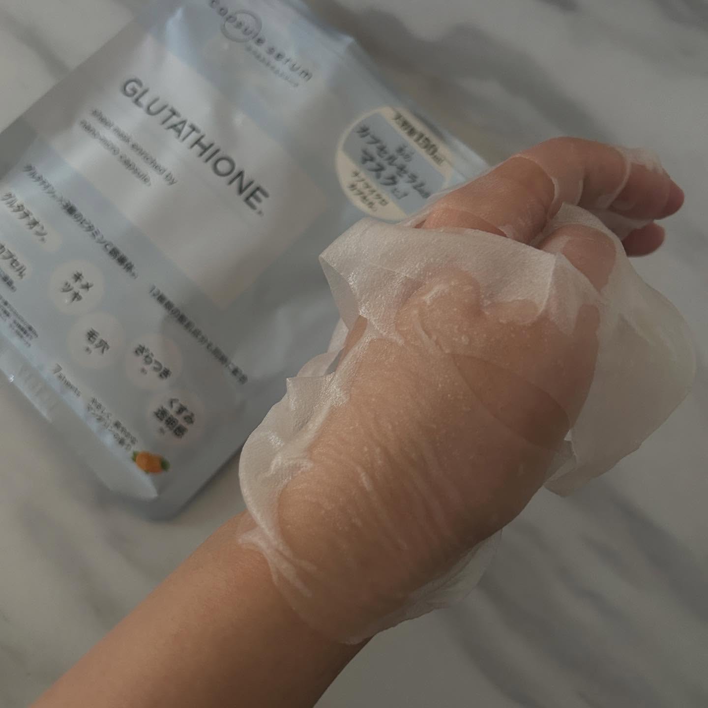 あの人気のカプセルセラムがなんとマスクになって登場したそう! 乾燥による肌のざらつきやキメの乱れをやさしくケアする、グルタチオンと3種のビタミンC誘導体を配合した美容液たっぷりのシートマスクˊ˗ 薄めのシートはピタッと密着してはがれにくく、3分と短時間で使えるところもポイント◎ やさしく爽やかなマンダリンの香りも⋆* さっぱりしつつも短時間でも水分感に満たされるお肌になり、朝にも使いやすいマスクです♩