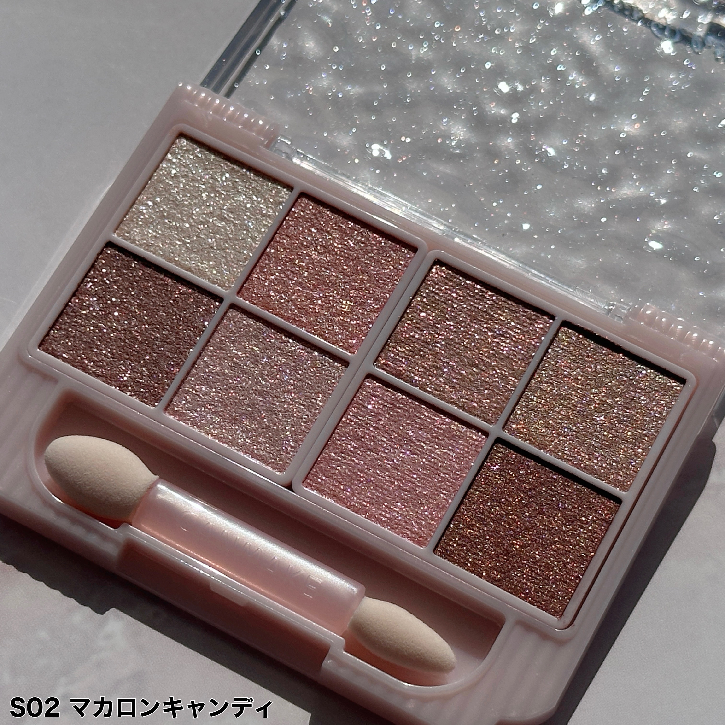 - いつでも一緒💗多色なのに持ち歩ける! 8色入りアイシャドウパレットのラメバージョン✨ 持ち運びやすいサイズ感なのに、贅沢に8色入り&便利なダブルエンドチップ付。 これ1つでアイシャドウが完成するように、 スパークリングタイプは「ラメだけがのるパウダー」を6色、 「ベースが透けて発色するパウダー」を2色セットしています! 使い道に困るような大きすぎるラメではなく、 使いやすさを重視し普段のメイクにも取り入れやすいサイズの ラメを採用しました♪ 他のアイシャドウに合わせて使うのもオススメです✨