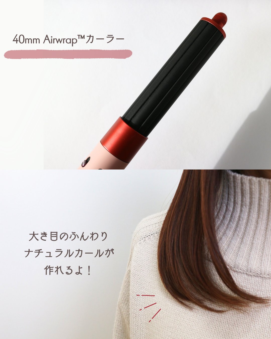 大人ピンクのこの色味はさくらチェリーという色 とっても可愛いですよね アタッチメントが4つ ・40mm Airwrap™カーラー 大きめカールが自由自在 髪質や長さ・スタイリング技術のレベルを設定することで 巻きつけからカール設定、クーリングまでが自動設定されるの