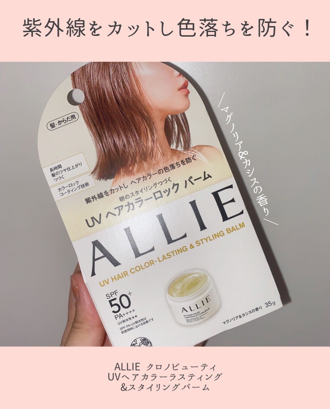 新感覚の髪・からだ用のバームが新登場! クロノビューティ UV ヘアカラーラスティング&スタイリング バーム[ SPF50+ PA++++/UV耐水性★★ ] ヘアスタイリングに使うだけで紫外線カット& ヘアカラーの色落ちを防ぐ✊🏻👒 耳・うなじ・デコルテなどの日やけ止めとしても使える髪・からだ用の万能アイテムだよ✊🏻