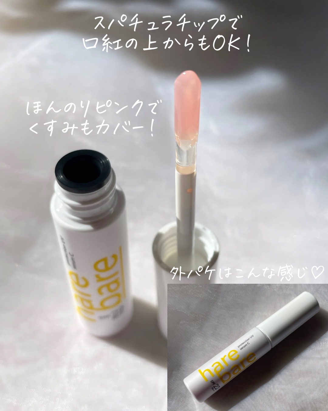 日やけによるシミ・そばかすを防ぐ、肌をケアする美容液UVシリーズ“ハレバレ”から3種のビタミンC誘導体*1 配合の美容液UVリップが数量限定で登場❣️ スパチュラチップは薄くしなやかで、唇にフィットするような塗り心地🫶🏻 使い終わったあとにティッシュなどで拭きやすくて、衛生的に使えるところもいいですね🌈 唇のケアをしながらUVケアもできる、おすすめリップです🥳