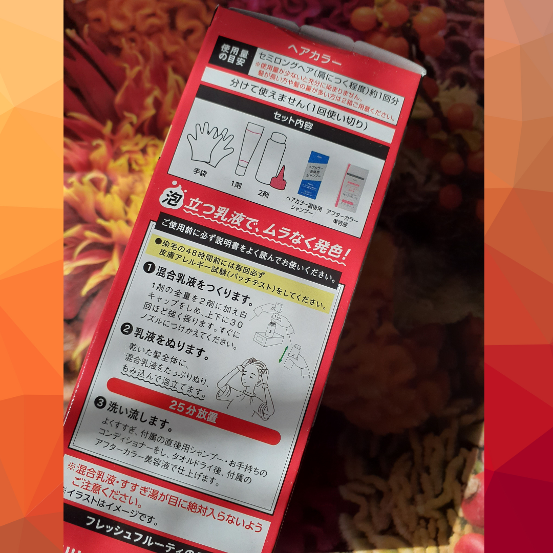 脱色&発色の仕上がりに満足🌟 エクスチェンジカラー処方採用でカラーチェンジを楽しめる! 泡がすごくオレンジで大丈夫かな?と心配になりましたが、洗い流してみると綺麗なレッドに❤️ ヘアカラー直後に使うシャンプーが付いてくるところも嬉しい☺️