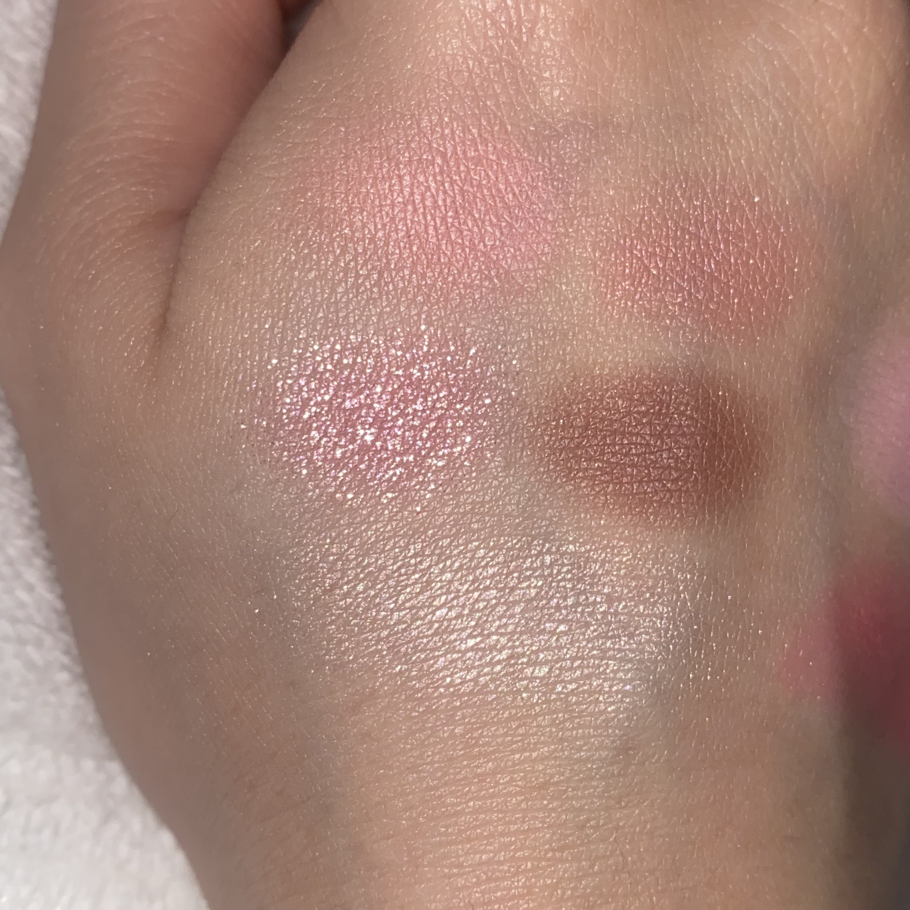 これからの季節に大活躍しそうな苺パレット🍓 赤✖️ピンクが可愛すぎる、、🥹 特にラメの煌めき、密着力がすごい…🤦🏻♀️💞 赤に近いピンクのベースにピンクラメが可愛すぎるしハイライト部分はゴールドラメも入っていて チーク部分は柔らかい質感でふわっと発色してくれるから今流行りの目の下チークに使えば絶対可愛い🫣💖