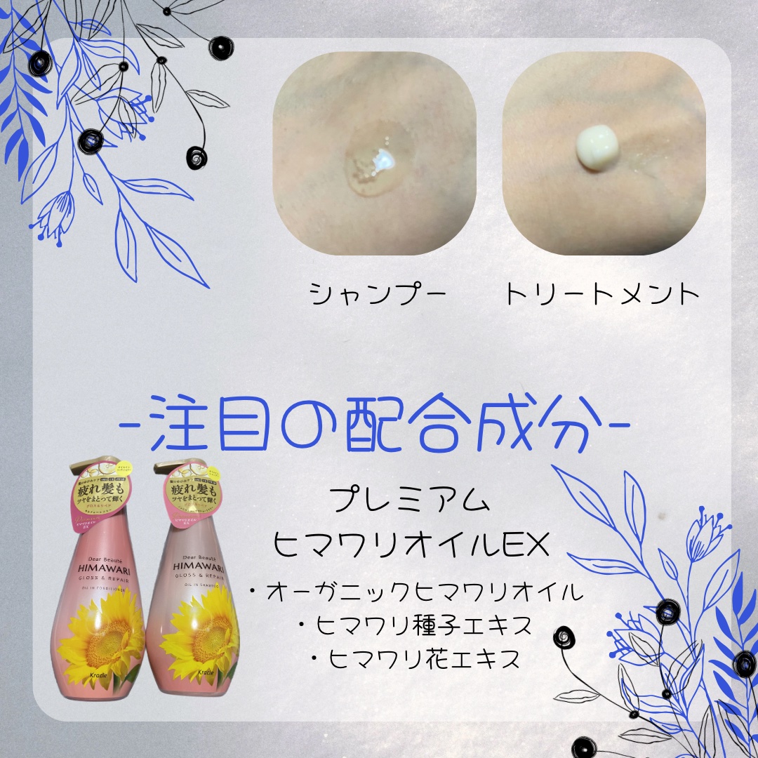 - <シャンプー本体> 水、ラウロイルサルコシンTEA、パーム核脂肪酸アミドプロピルベタイン、コカミドメチルMEA、ココイルグルタミン酸TEA、ココイルメチルタウリンNa、ヤシ油脂肪酸PEG-7グリセリル、ヒマワリ種子油、ヒマワリ種子エキス、ヒマワリ花エキス、ポリクオタニウム-7、クエン酸、セテアレス-60ミリスチルグリコール、グアーヒドロキシプロピルトリモニウムクロリド、ポリクオタニウム-10、ポリクオタニウム-49、エタノール、塩化Na、グリセリン、BG、EDTA-2Na、安息香酸Na、香料、カラメル <コンディショナー本体> 水、ラウロイルサルコシンTEA、パーム核脂肪酸アミドプロピルベタイン、コカミドメチルMEA、ココイルグルタミン酸TEA、ココイルメチルタウリンNa、ヤシ油脂肪酸PEG-7グリセリル、ヒマワリ種子油、ヒマワリ種子エキス、ヒマワリ花エキス、ポリクオタニウム-7、クエン酸、セテアレス-60ミリスチルグリコール、グアーヒドロキシプロピルトリモニウムクロリド、ポリクオタニウム-10、ポリクオタニウム-49、エタノール、塩化Na、グリセリン、BG、EDTA-2Na、安息香酸Na、香料、カラメル <シャンプー詰替> 水、ラウロイルサルコシンTEA、パーム核脂肪酸アミドプロピルベタイン、コカミドメチルMEA、ココイルグルタミン酸TEA、ココイルメチルタウリンNa、ヤシ油脂肪酸PEG-7グリセリル、ヒマワリ種子油、ヒマワリ種子エキス、ヒマワリ花エキス、ポリクオタニウム-7、クエン酸、セテアレス-60ミリスチルグリコール、グアーヒドロキシプロピルトリモニウムクロリド、ポリクオタニウム-10、ポリクオタニウム-49、エタノール、塩化Na、グリセリン、BG、EDTA-2Na、安息香酸Na、香料、カラメル <コンディショナー詰替> 水、ラウロイルサルコシンTEA、パーム核脂肪酸アミドプロピルベタイン、コカミドメチルMEA、ココイルグルタミン酸TEA、ココイルメチルタウリンNa、ヤシ油脂肪酸PEG-7グリセリル、ヒマワリ種子油、ヒマワリ種子エキス、ヒマワリ花エキス、ポリクオタニウム-7、クエン酸、セテアレス-60ミリスチルグリコール、グアーヒドロキシプロピルトリモニウムクロリド、ポリクオタニウム-10、ポリクオタニウム-49、エタノール、塩化Na、グリセリン、BG、EDTA-2Na、安息香酸Na、香料、カラメル