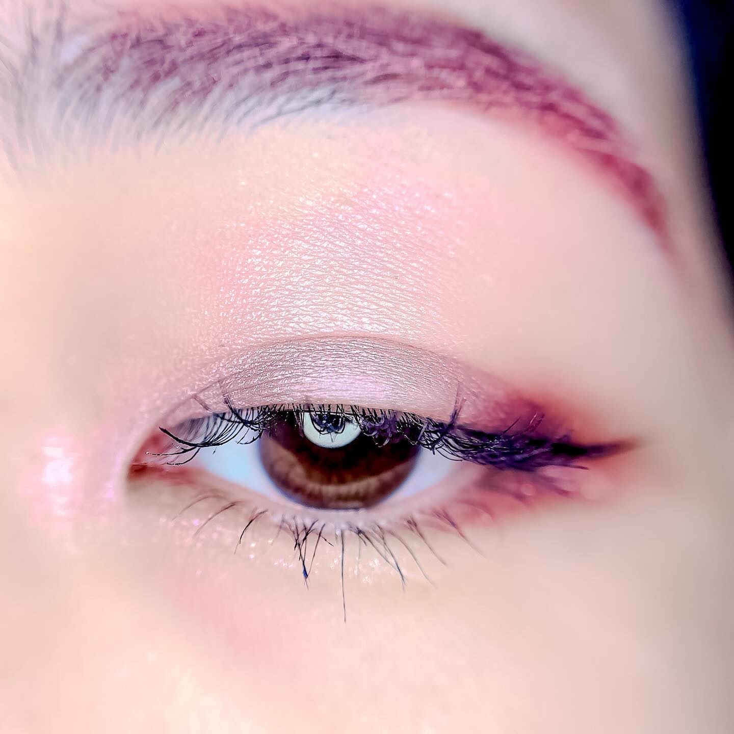 ベースに右上、目頭から黒目上に真ん中、黒目〜目尻に右下を、左上を目頭にくの字に塗ってもらいました✨ ピンクサクラよりもクールな感じで、目で見た色より私の肌では紫っぽく発色しました😍 上2つはラメはぎっしりでときめく💓 ブラウンメイクがとても苦手だけれどこれならブラウンメイク出来そう👌(かなり紫寄りですが) くすみ感は強いので苦手な方は厳しいかも…(特に真ん中) クールな印象になるので大人顔さん向けor大人顔になりたい方向けのイメージです✨