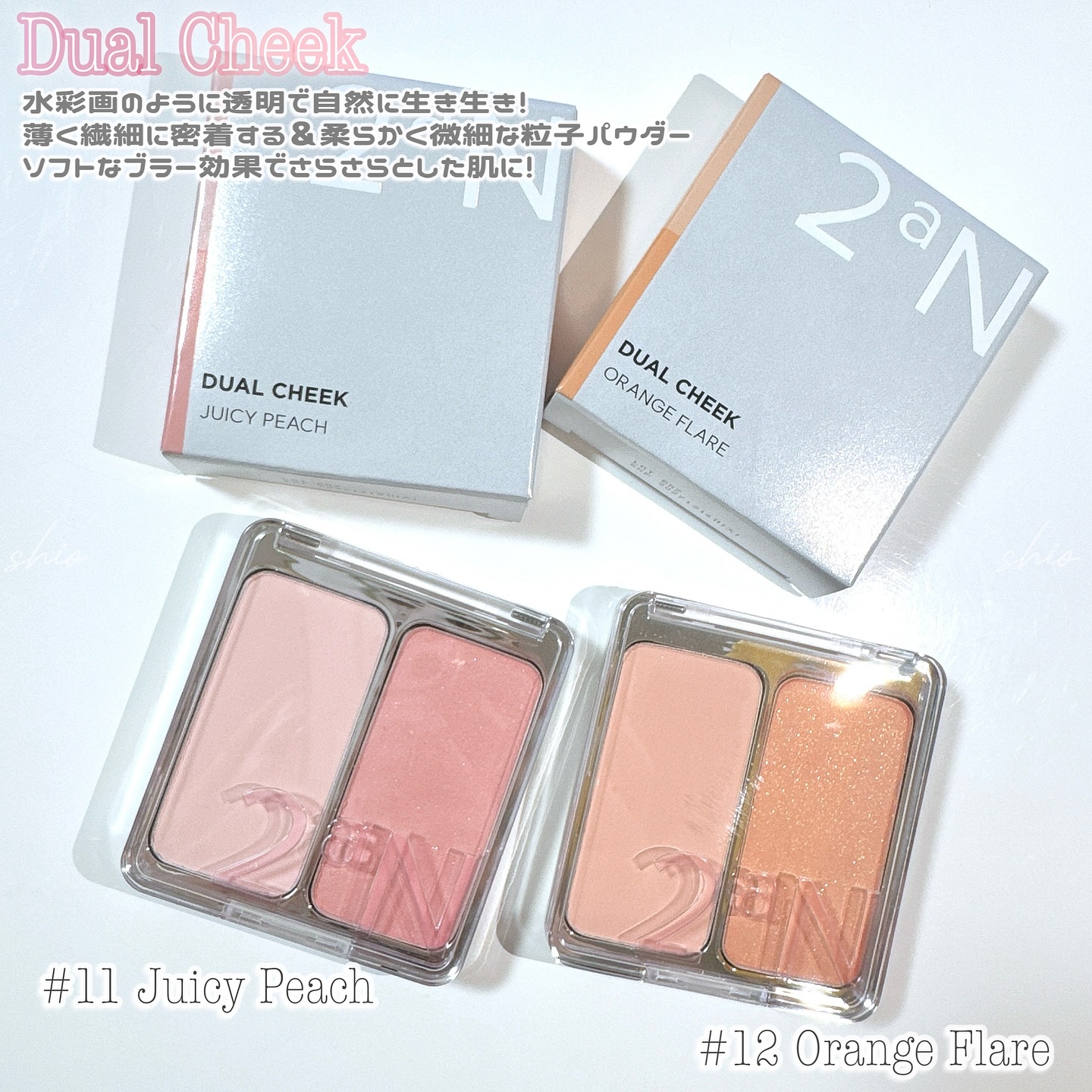 2色入りで、それぞれかわいい色! 私の使い方が下手なのかわからないけど 2色の発色の差が結構大きくて難しかったです… しっかり発色のチークが好き!って方に向いてる商品だと思う。 ふんわり発色が好きな方には微妙だと思う。 質感的にはプリンポットだと爪に色が入っちゃうよって方に こっちを進めたいとは思ったかな!
