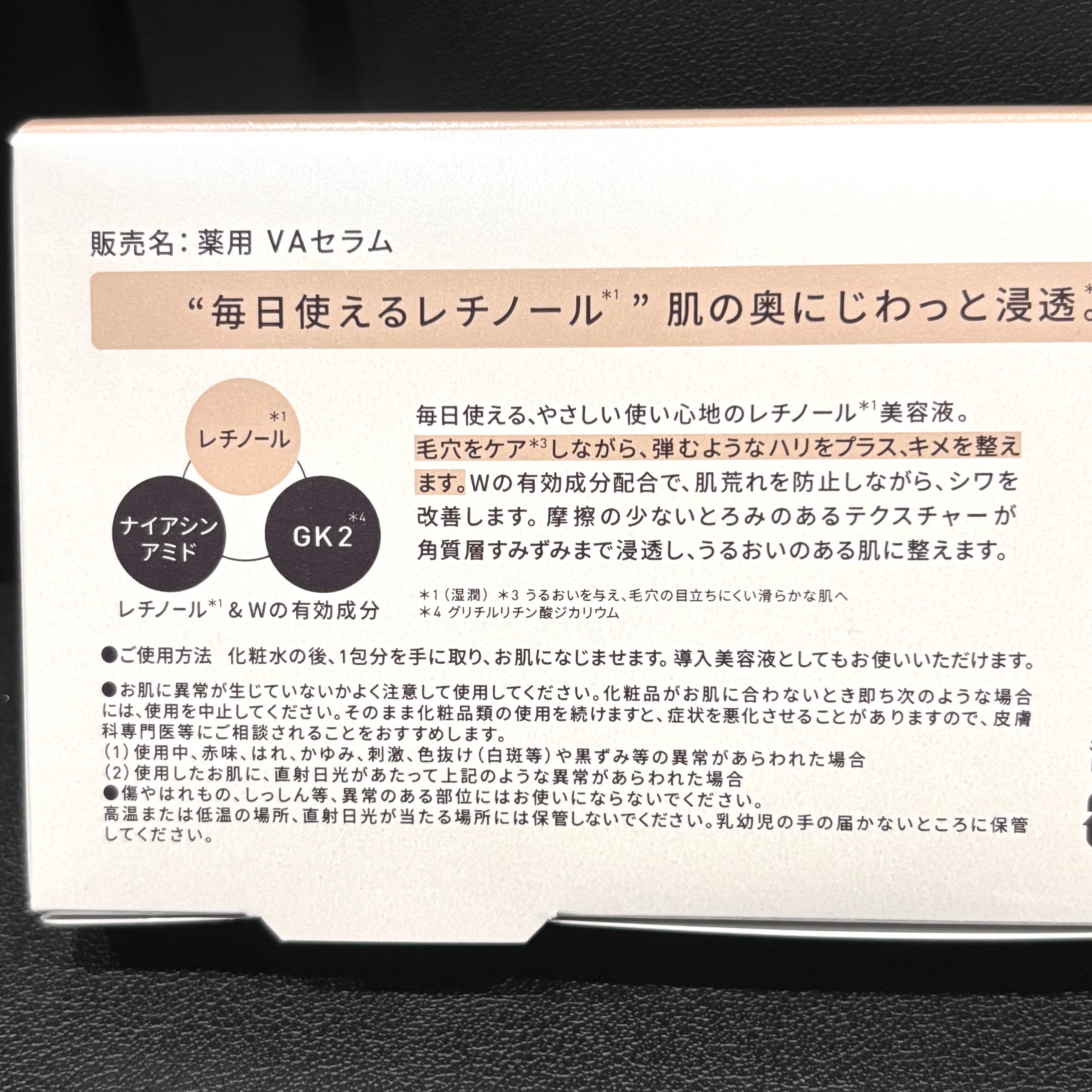 生VC美容液 3,950……ビタミンCが酸化しないように個包装されており、フレッシュな状態で肌に塗れる。 生VAダーマ美容液 4,950……酸化・劣化しやすいレチノール(ビタミンA)を安定的に配合し、肌に閉じ込めて届ける。 純度100%の生レチノールを、新鮮な状態で肌に塗布出来るのは衛生的だし特別感もありますね。