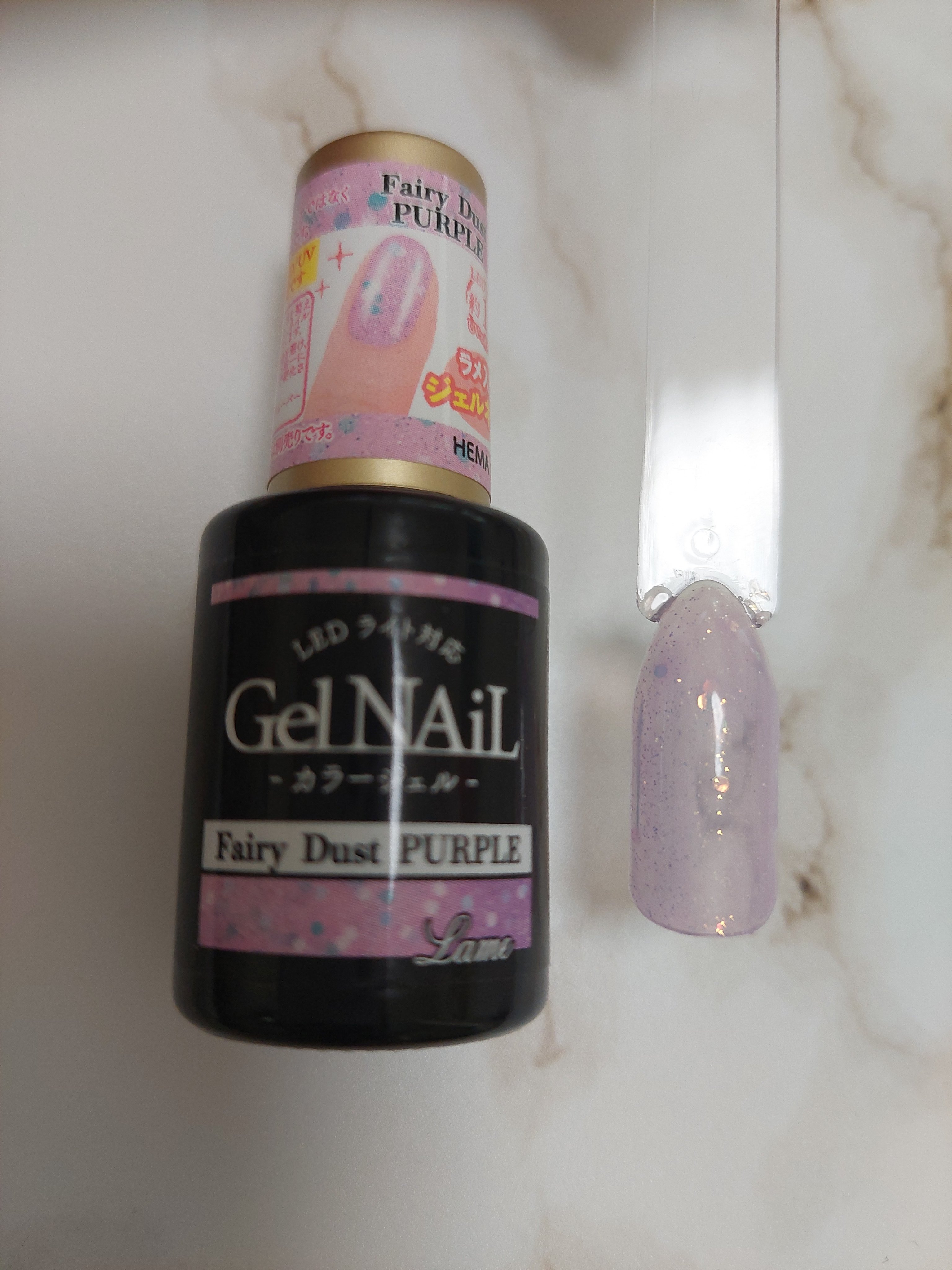 透け感のある鮮やかなベースカラーに、細かいラメと六角形のホロが入ったカラージェルです。 キャンドゥのエレガンスファンタジーよりもキラキラ。動画はクラウドピンクとの比較ですが、輝き方が全く異なることが分かると思います。 ゆめかわキラキラな仕上がりになって可愛いカラーでした。サンリオ感ある。