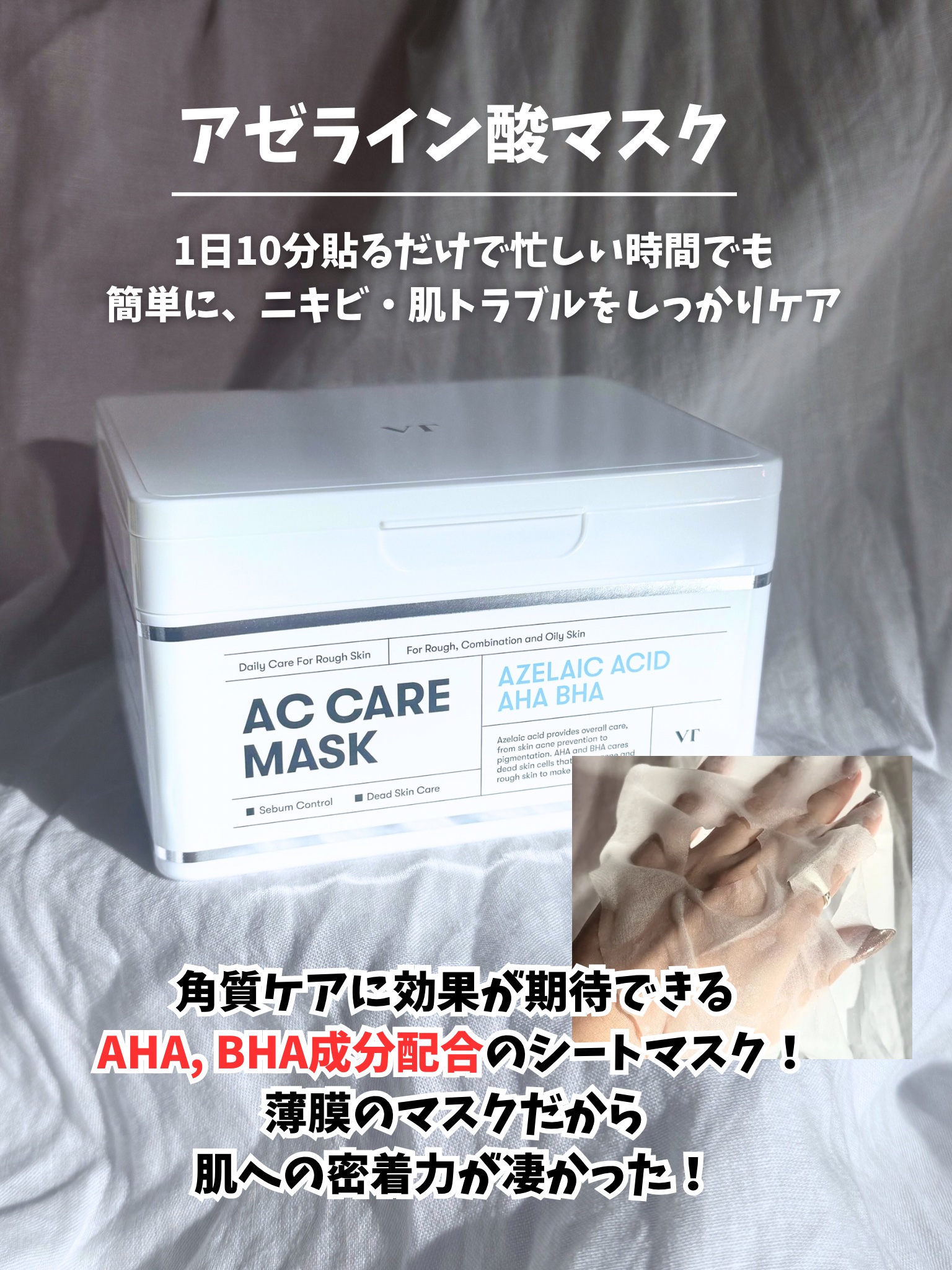 高純度99%アゼライン酸+VTならではの鎮静システムであるCICAエクソソーム配合の高機能アンプル!赤いカラーリングが、もうすでに効果高そう!と期待させてくれます♡⃛ 1日10分で角質ケアを叶える大容量フェイスマスク⋆꙳ 30枚入で気負わず使えるから、使う時の心理的な負担感が本当に軽い♡ アゼライン酸はニキビができている人はもちろん、生理前なんかのニキビできそう!なんてタイミングで使うのもよいそう♡