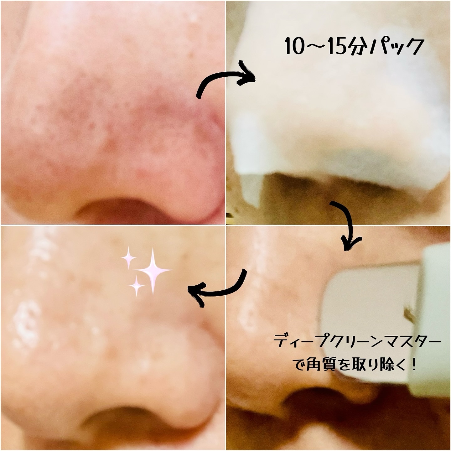 毛穴の汚れをゆるめてかきだす! たるみ毛穴や、くすんだメラニン毛穴にも。毛穴ケアができる豪華4点セット🙌 スーパーメルティング セバムソフトナーは、少しスーッとした使用感で、気持ちよくパックできます!コットンは15分経っても乾くことなく、ヒタヒタでした😊 ディープクリーンマスターで、毛穴汚れをかきだすのが楽しい😁🎵 力を入れると肌を傷めてしまうので、やさしくがポイントです⚠️