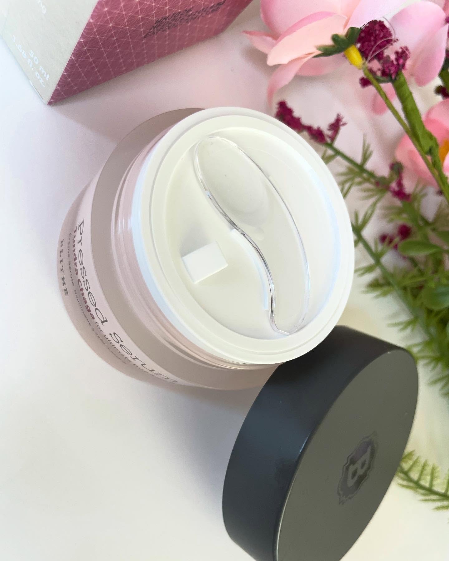 韓国のプレミアムスキンケアブランドBLITHE Pressed Serum Tundra chaga ぷるぷる弾力の固形セラム!🍮 シワやたるみが気になる方におすすめ! ぷるぷるのテクスチャーでまるでプリンみたい 冬にぴったりの固形セラムだと思ったよ!Qoo10で購入できるからぜひチェックしてね!