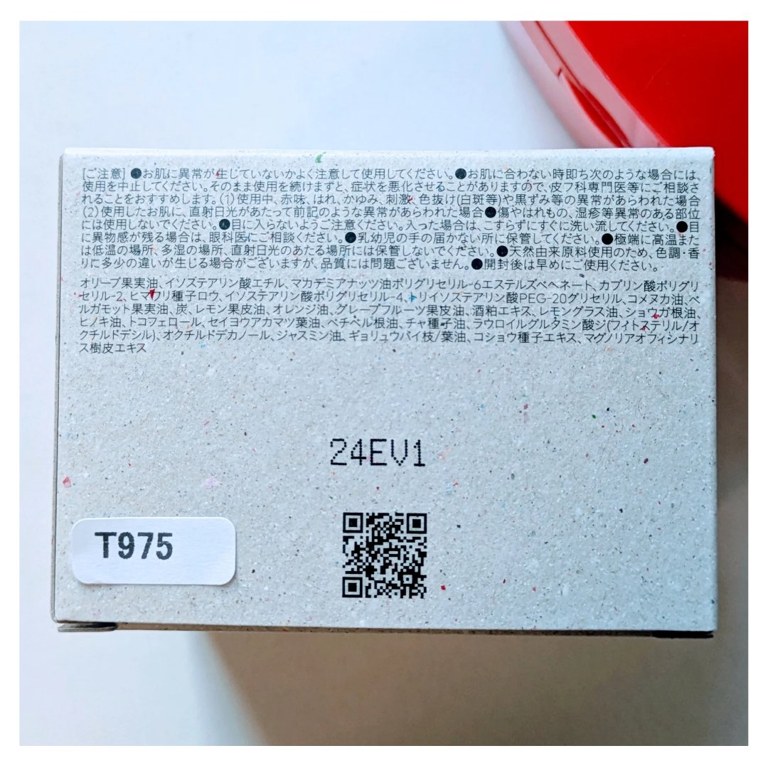 - 摩擦の少ない洗い心地を実現した、新感覚の”ローメルト”テクスチャー。 肌への優しい使い心地を追求するため、通常*の3倍以上の時間をかけて作った「極上*の天然クレンジングバーム」 梅炭の力で、メイクや汚れをしっかり落としつつ、天然ワックスが、お肌のバランスを整え、うるおいを保ちながらしっかりと汚れを洗浄することの両立を実現。 躍動感のあるSoilbeat(ソイルビート)は、シトラスウッディの精油プレンド。 自然由来指数97%(水を含む)(ISO 16128に基づき算出) *自社製品内比較 ※ポリエチレン不使用
