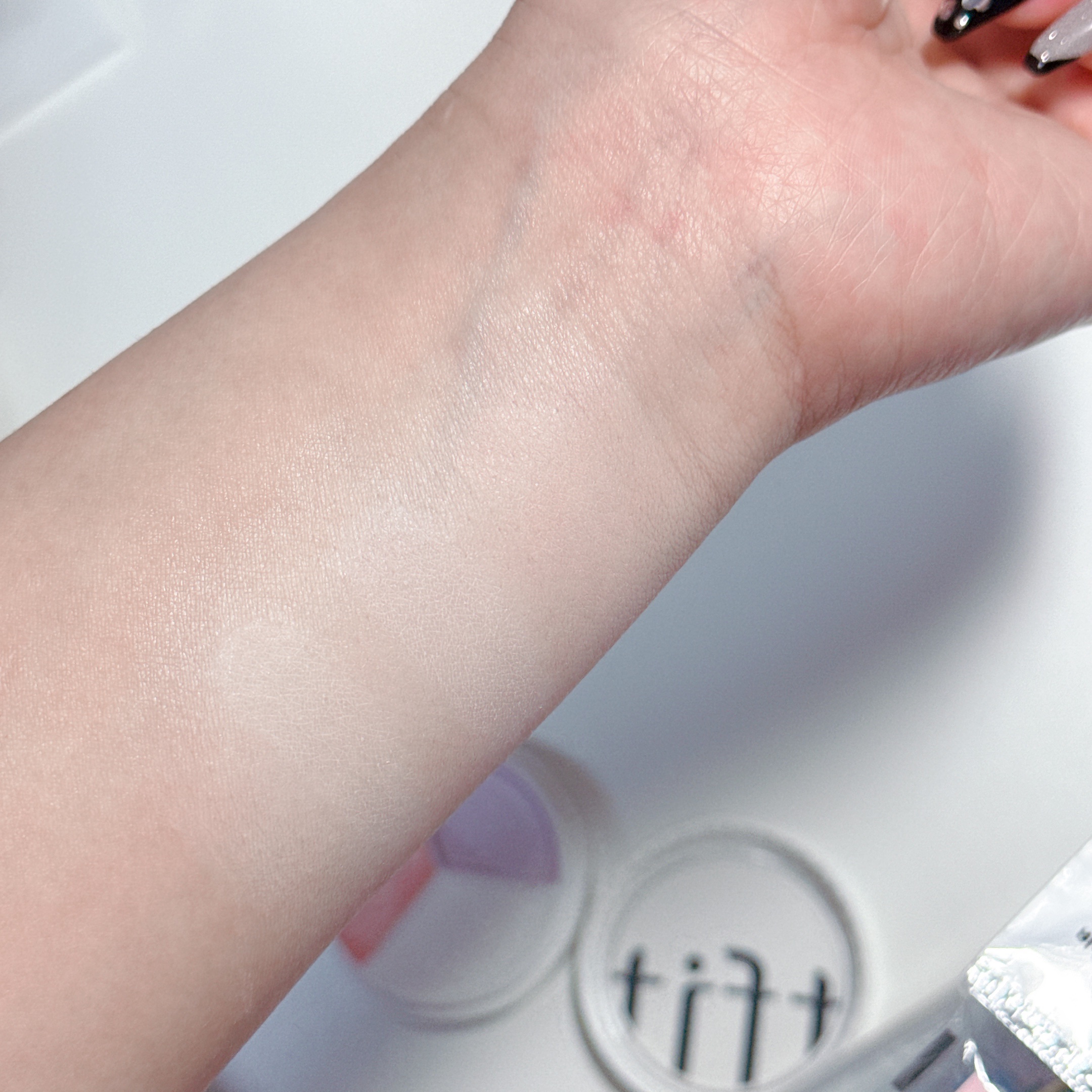 固形で触ってみるととろけるようなテクスチャー。肌にピタッと薄く、でも密着力を感じる。 気になる新色というのが、なんとベージュカラーではなく「コントロールカラー」。くすみをカバーしたり、ツヤを入れたりすることが出来ます🙆♀️ これだけで結構綺麗な肌になるので、「なんか今日肌の調子良いな〜」って日はこちらだけでもいいかも。