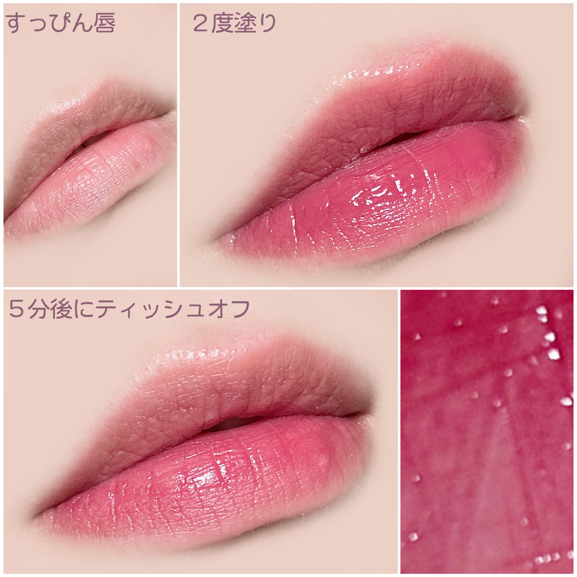 見た目はベージュですが、肌に伸ばすとパールだけが乗ります✨ そのまま塗ると、スキンケア後のようなみずみずしいツヤ肌 指で伸ばすと、内側から発光するような自然なツヤ肌になります🙆🏼♀️💕 唇の山に塗ると、リップが映えます💋💄 しっかり伸ばせば少しは長持ちします🤏