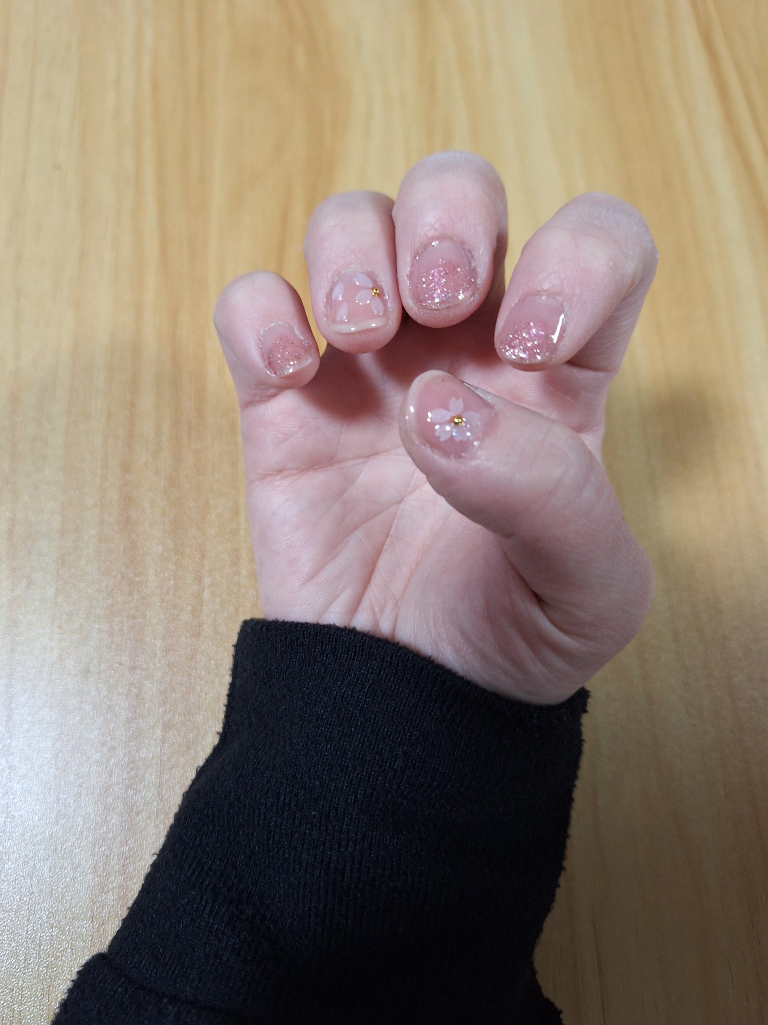 引き続き桜ネイル🌸 桜ホロ乗せてないのところはグラデーションにしました(*^^*) 左右で色味を変えたくて左→ファンデーションカラーズ01 右→ファンデーションカラーズ02にしてみました。 今日使った桜ホロはDAISOのパープルのホロです✨