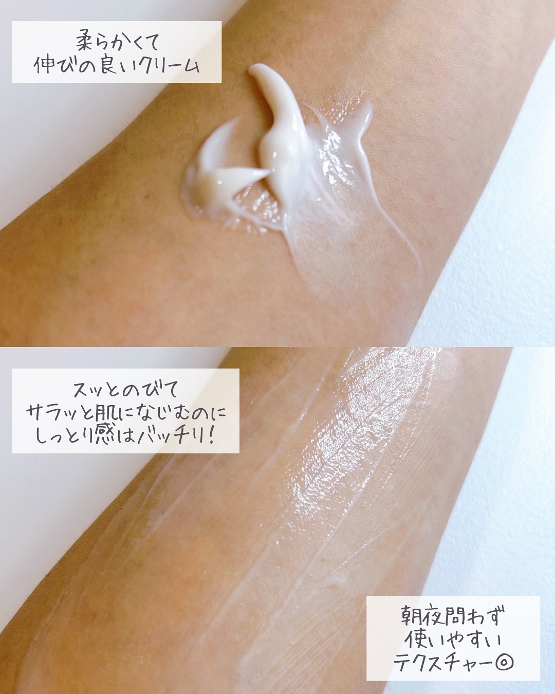 | なめらかでやわらかいテクスチャーでみずみずしく伸びもよくクリームなのにベタつかないから使いやすい◎ | 詳細を見る | ||