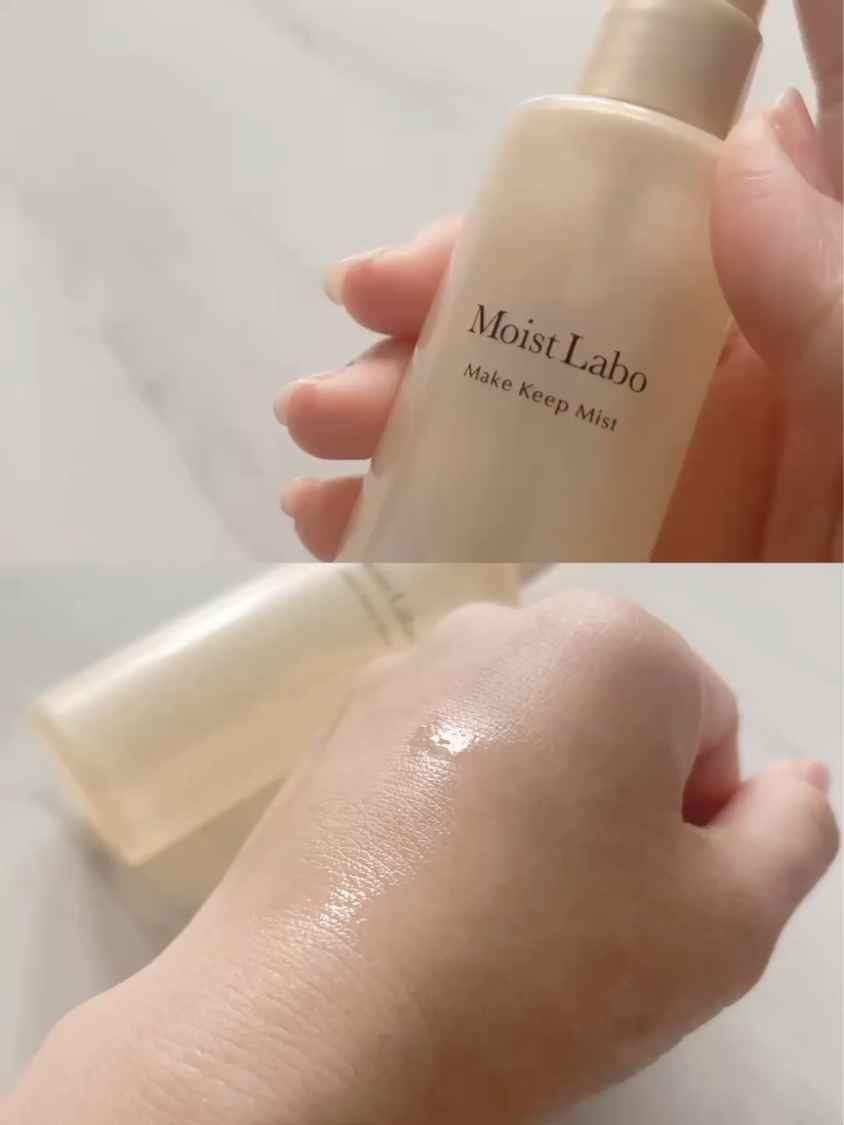 - 長時間うるツヤ肌続くメイクキープミスト 「モイストラボ メイクキープミスト< ツヤタイプ> 」はつけた瞬間、たっぷりのうるおいで満たし、日中の乾燥を防ぎながらメイク崩れをしっかり防いでくれるメイクキープミストです。美容液成分をたっぷり配合しているのでスキンケア効果が高く、ハリのあるツヤ肌に仕上げてくれます。