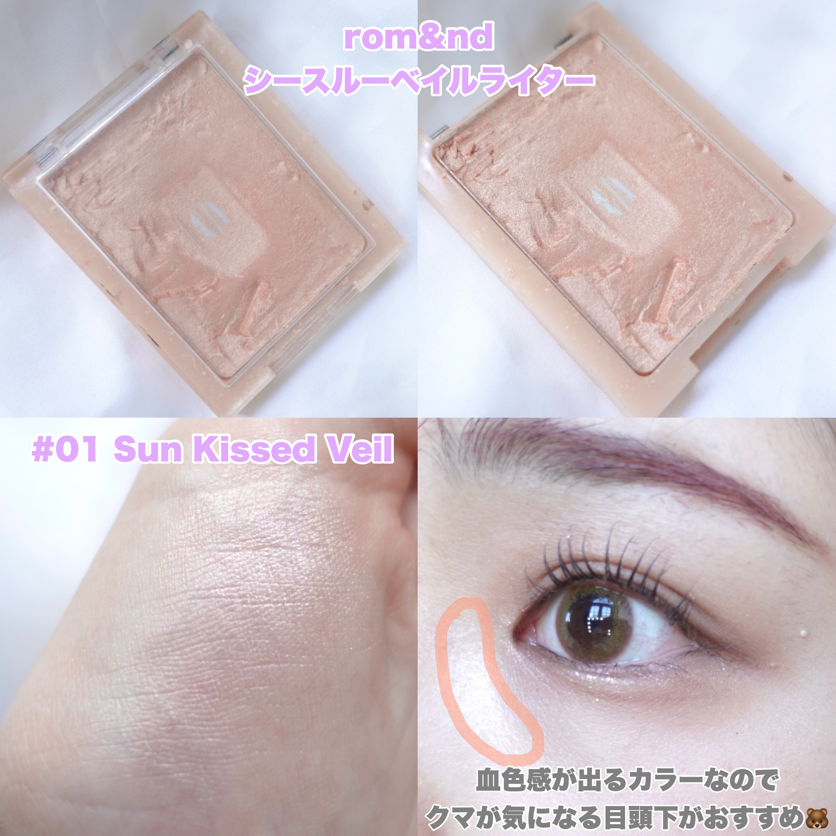 ゴールドに光るハイライトを探していたの🥲 夕方までキラキラしていてとてもお気に入り🥰🥰 評価の良いrom&ndにしてみた✨ 白に光るハイライトは白浮きしちゃって似合わないので イエベ大優勝のハイライト🍑 rom&ndのヴェールライター01