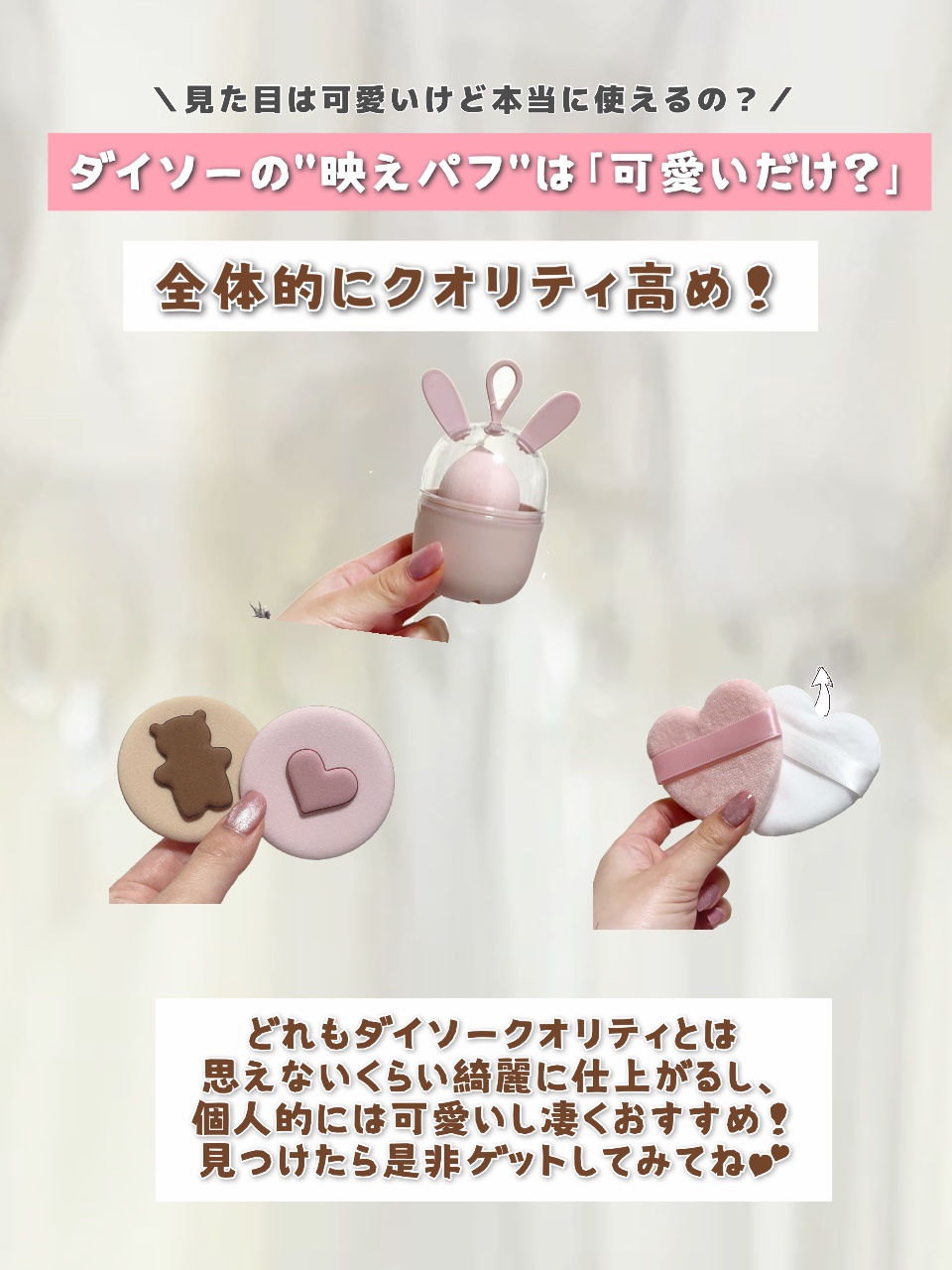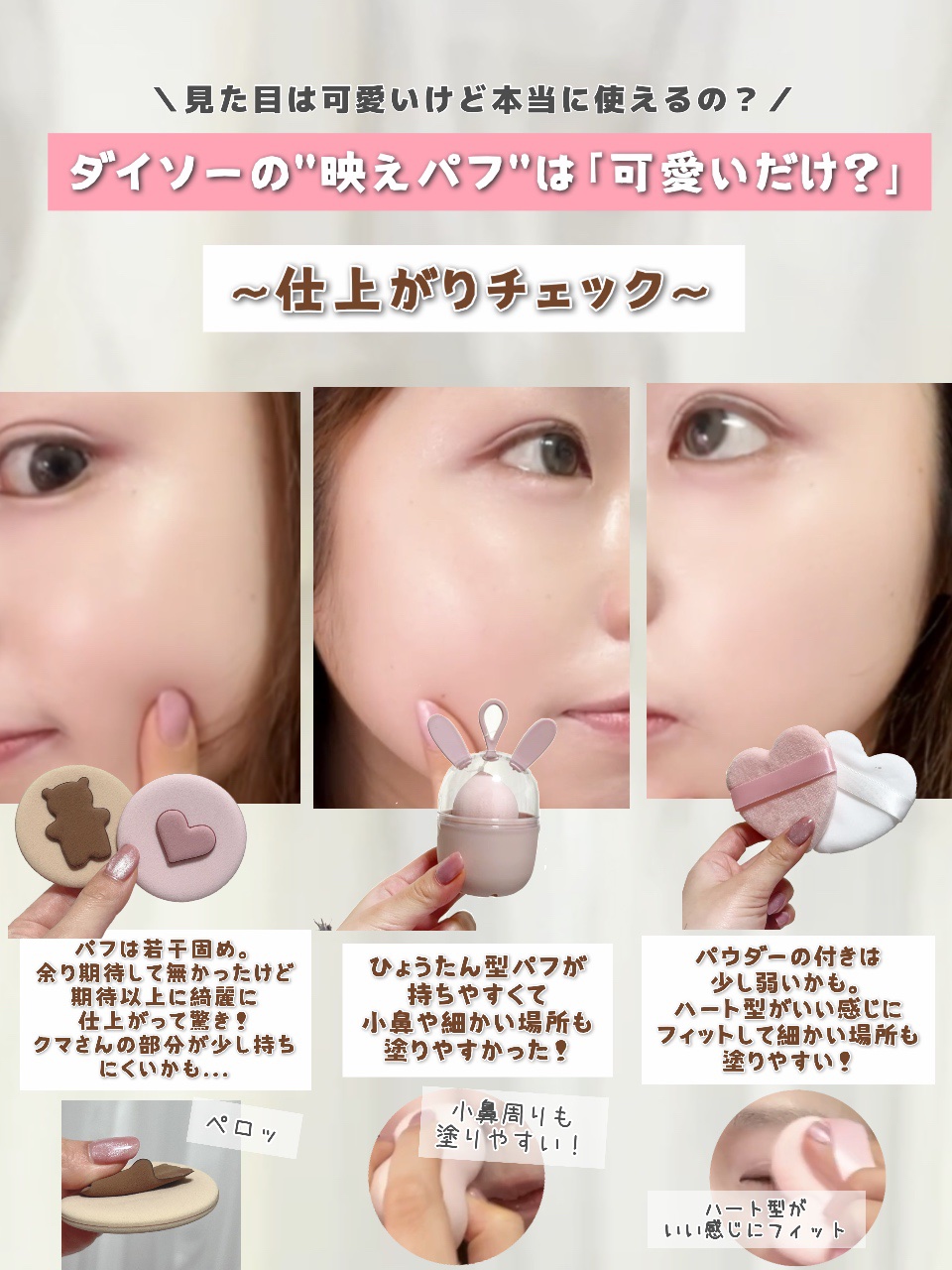 DAISOパフ可愛いのクッションファンデーションのパフ探しててこれにしてみたDAISOキュート メイクアップパフ気になってる方はチェックしてみてください#DAISOキュートメイクアップパフ#DAISO#キュートメイクアップパフ#キュートメイク...
