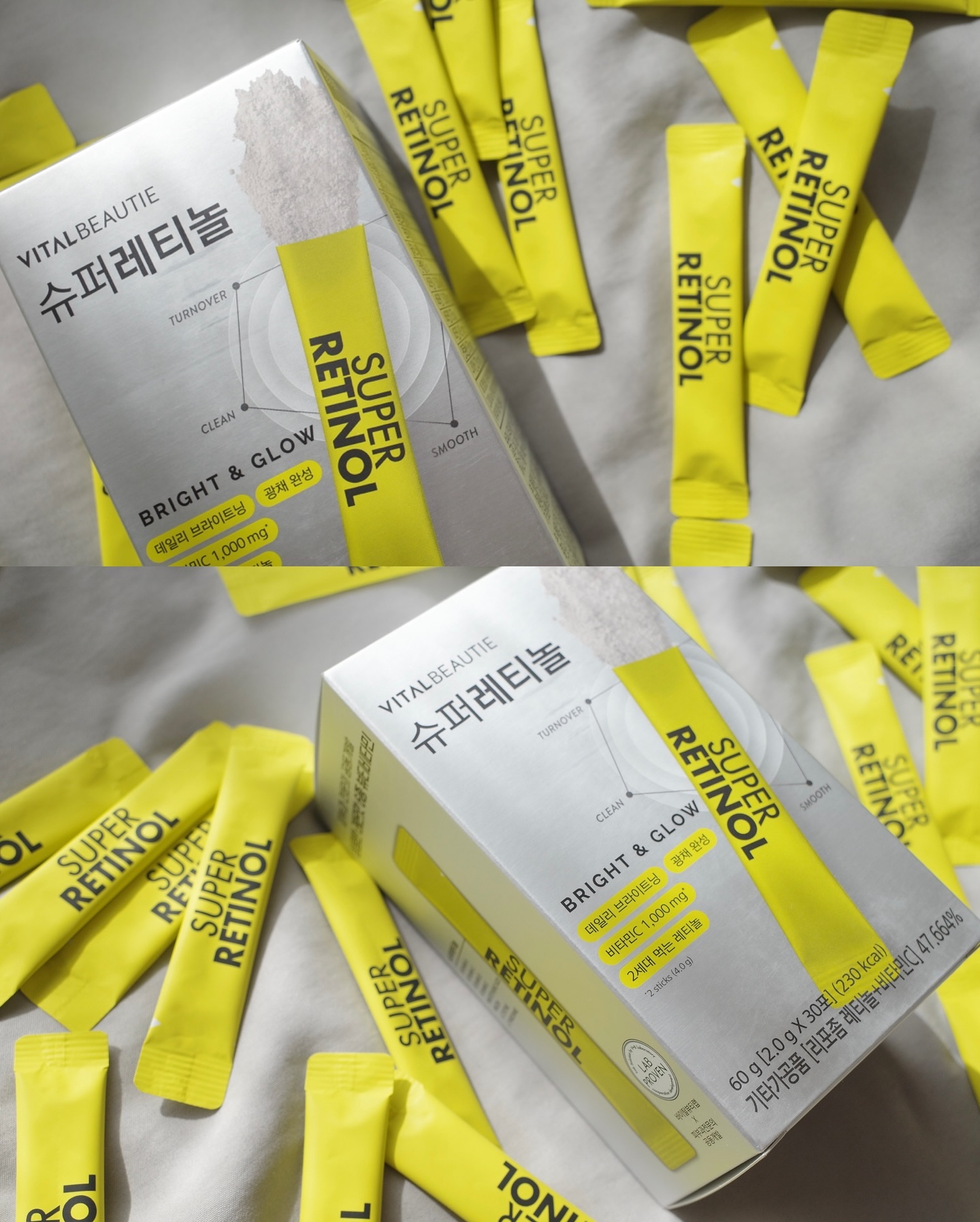- 食べるタイプのレチノール 1) 専門家のフォーミュラ Flex! - 皮膚科専門医とアモーレパシフィックが共同開発 29年間蓄積したレチノール技術で完成! 食べるレチノールプロテクション技術を適用 (ビタミンA、1000ugRAE配合*) 2) 明るく輝く! - 豊富に含むビタミンC1,000mg含有* - パントテン酸1日栄養成分基準配合* - ビタミンE、ビタミンD、亜鉛 副成分 L-システインとヘスペリジンを配合 3) さわやかなシトラスの味 「ヴィーガンレチノール」 - ヴィーガン認証を取得した毎日摂取できる美味しいレチノール *上記の栄養成分の数値は、2包摂を基準に作成された含量です *お召し上がり方! 1回1~2包を 直接摂取してください