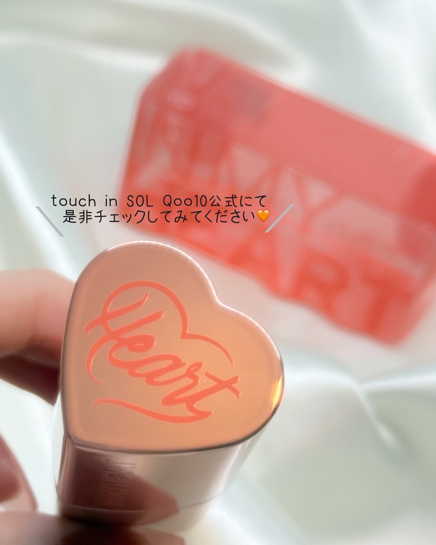 この可愛いハート型のスティック🧡 touch in SOLのチークなの😆 ポンとほっぺに押すだけで可愛いハートが🧡 クリーミーテクスチャだから手で優しく広がるよ 綺麗に色づいて24時間カラー持続! ズボラでも扱い雑にしてもチークが粉々にならないのが嬉しい touch in SOL (タッチインソル)プリティーフィルターインマイハートスティックチーク
