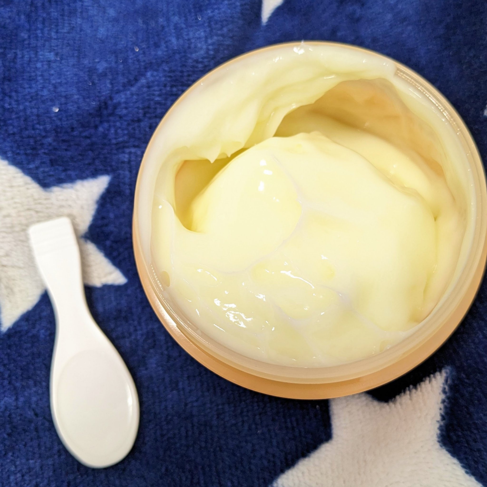| 比較的こっくりとしたテクスチャーのクリーム。 手に取った時は少し硬めに感じるのに、伸ばすと瑞々しく伸びて、その違いにびっくりした! | 詳細を見る | |||