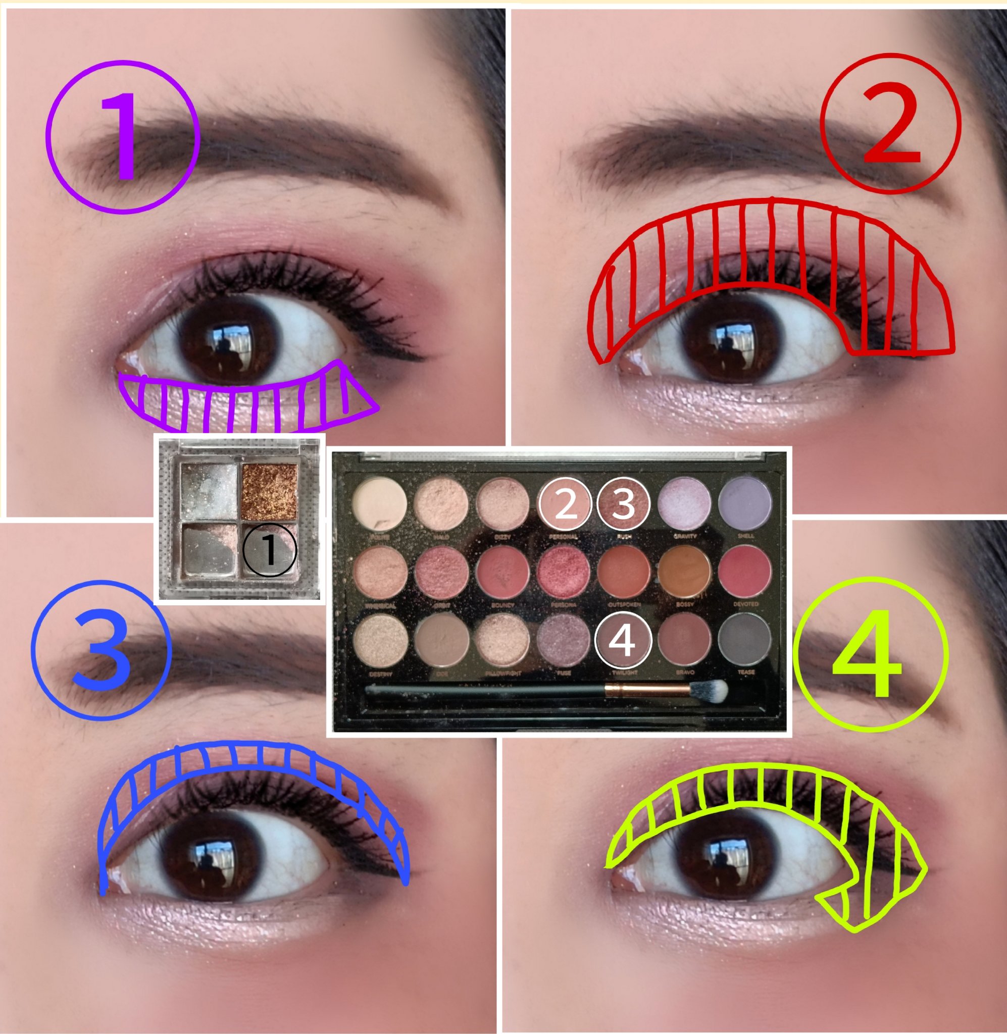 アイシャドウパレットは、URGLAM UR GLAMBLOOMING EYE COLOR PALETTE 02を、使用しました。 マスカラは、MAYBELLINE NEW YORK コロッサルボリュームエクスプレスを、まつ毛全体にまんべんなく塗ります。 リップは、wet 'n' wild MegaLast Lip Colorを、唇全体にまんべんなく塗ります。