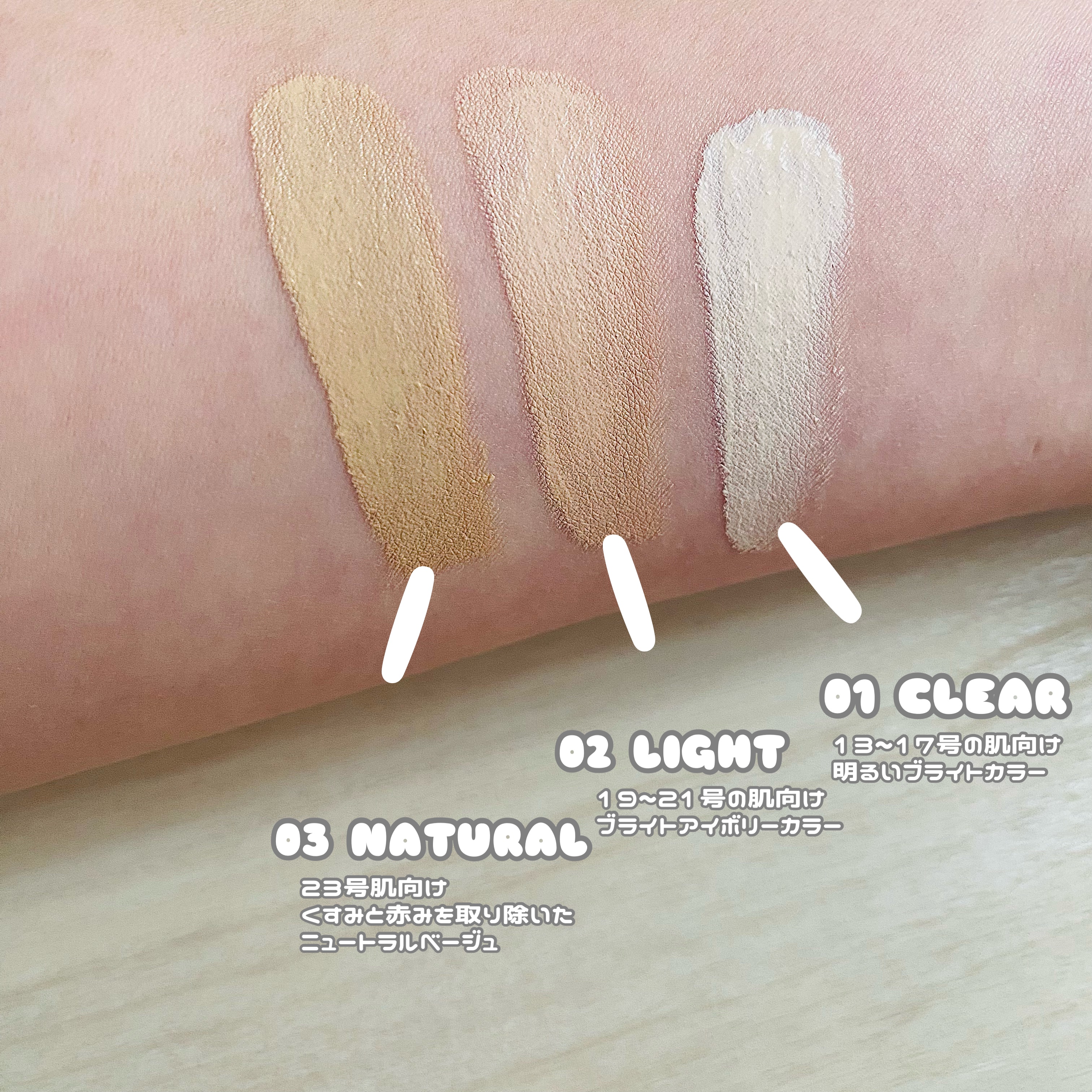 付け心地も軽くてしっかりカバーもしてくれる✨ 1日中つけてても全然重たくなくて崩れ方も綺麗で私的にすごく良かった🥺💖 パケもシンプルで大人っぽくて可愛い〜〜🤍🤍 私は02番を使用しました🎶🎀✨