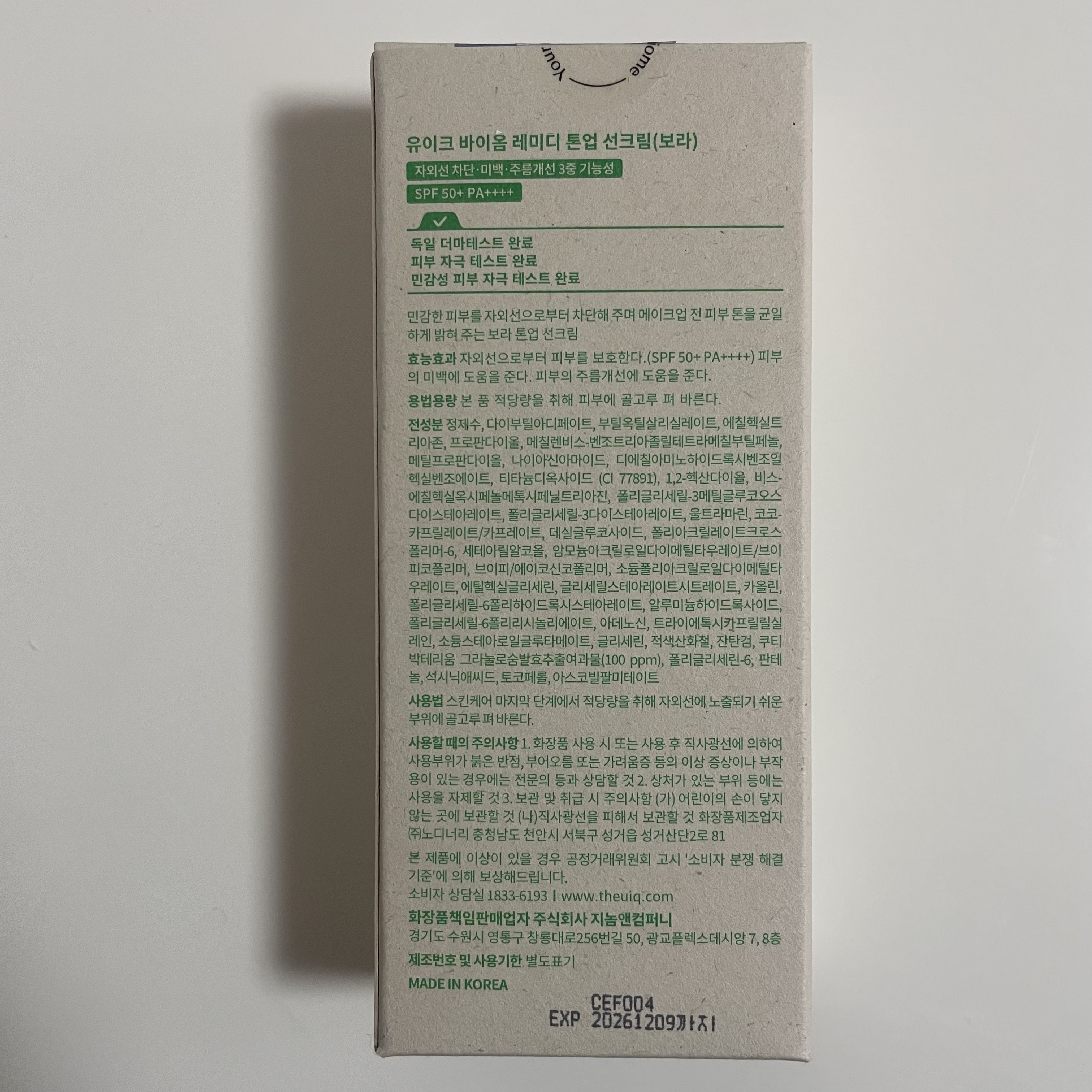UIQ バイオームレメディグリーントーンアップUVクリーム |