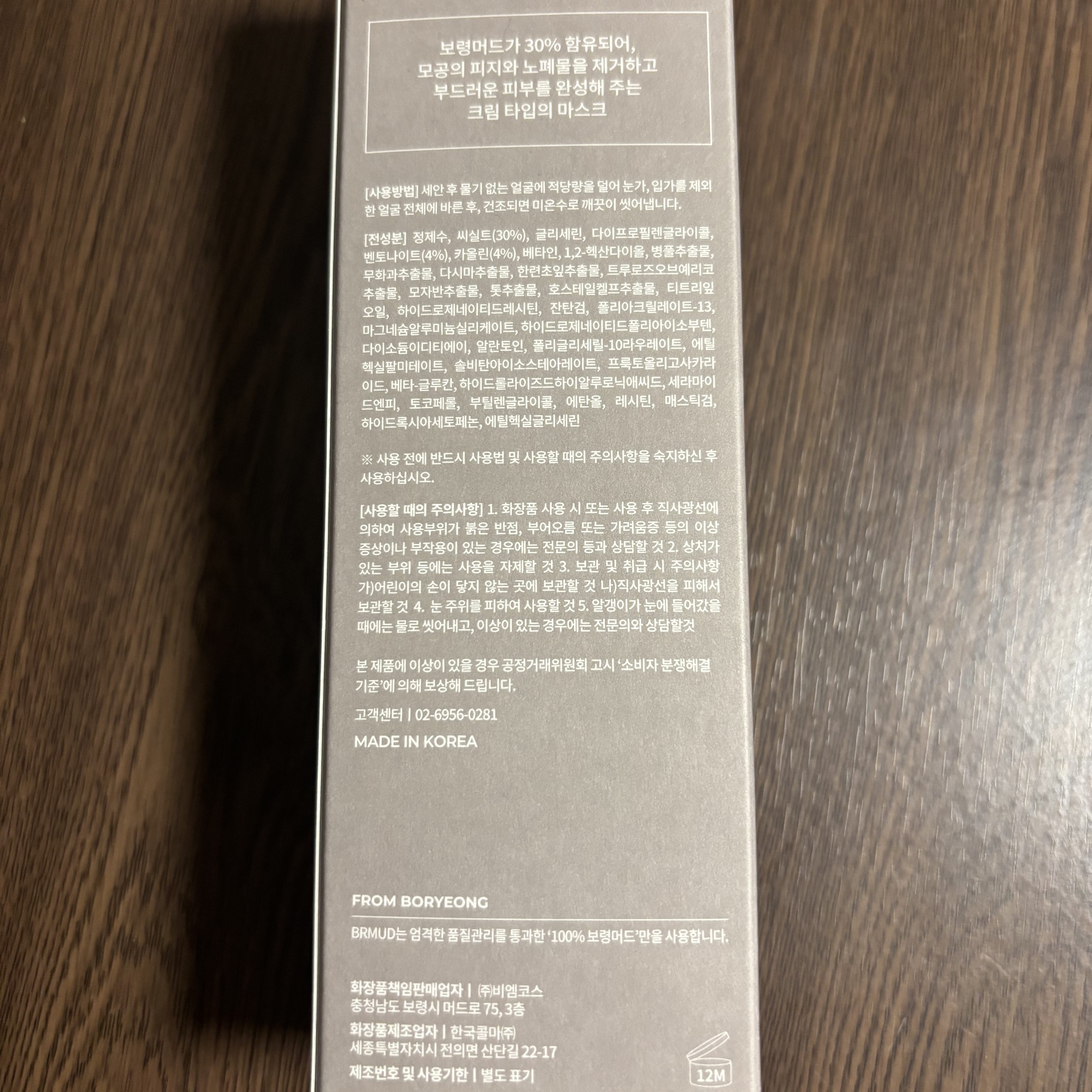 韓国の泥の聖地といわれる「ボリョン」の超微細な泥パウダー30%の圧倒的含有量!毛穴ケアマスク。 ティーツリーとツボクサエキスが肌の温度を下げ、肌を落ち着かせてくれます。 柔らかめのこっくりしたテクスチャー。少し独特な匂いがします。
