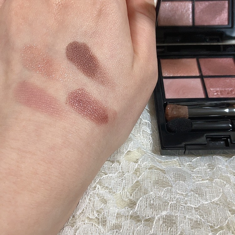 ミネラルクラッシィシャドーの限定色シェルフルール 春らしくて可愛かったので、見た目にときめいてしまい(*^^*) 左下のベースになるベージュがオレンジっぽくて明るく、暖かい色で素敵✨️ しめの右下は柔らかめでふんわり雰囲気 実は私の中でETVOSは休日メイク用なのですが、これは完全に普段使いしちゃうと思います👍️